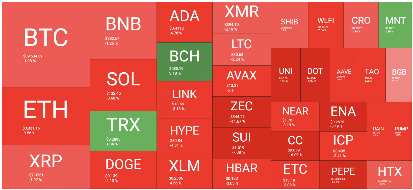 $2,804.64 While it is holding just above the $3,000 mark, down 3.4%, the XRP price is in danger of falling below $2. Altcoins with large market caps such as SOL, ADA, LINK, HYPE, DOGE and XLM suffered losses of up to 5%.