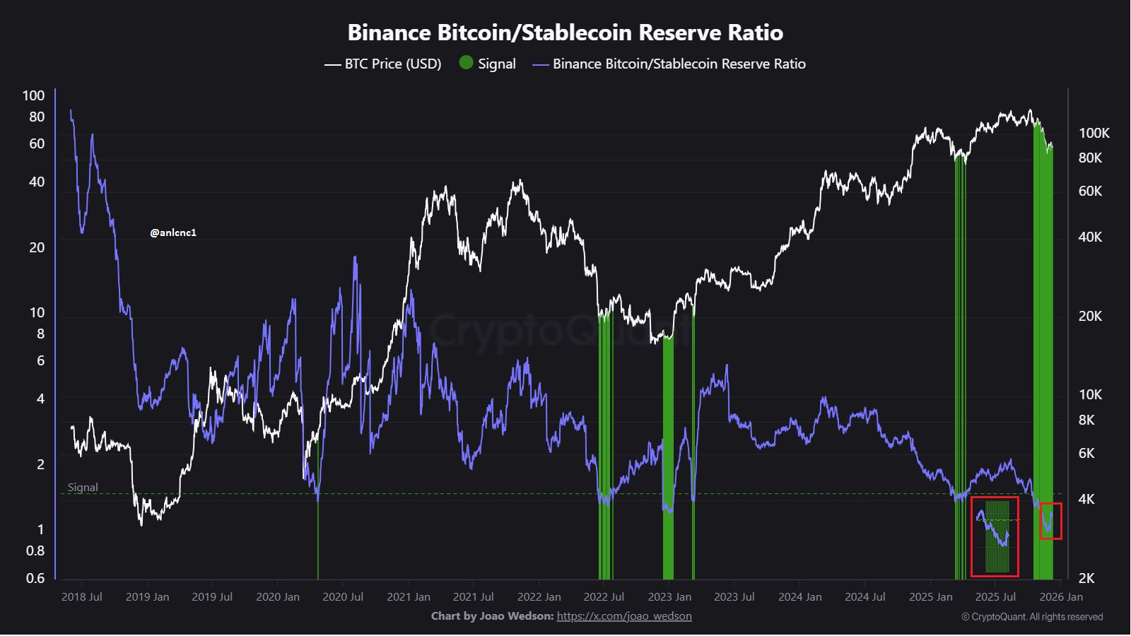 “Binance The BTC/Stablecoin Reserve Ratio has started to turn upwards after forming a bottom in the $86–$88K region. This is the Bitcoin I mentioned when I first shared it.