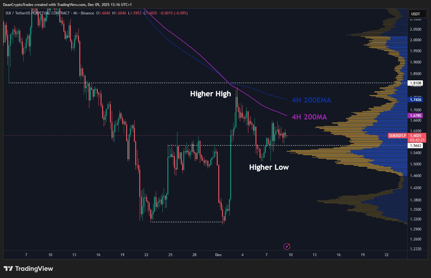The analyst nicknamed DaanCrypto is one of the favorites of many analysts today. to SUI Coin focused. The analyst sharing the chart below is pleased with the recent high high and high low. It is positive that the price found support in the $1.55 volume region, and the increase in demand above this indicates that we may see a rise to $1.8. Of course, taking into account year-end volatility and the dominant short-term selling trend in crypto, this is an optimistic expectation.