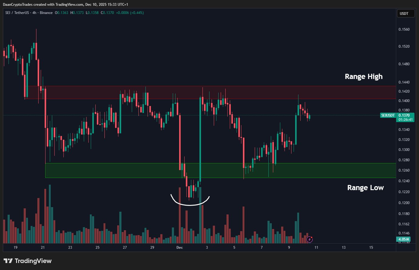 “SEI has been trading in this narrow range for the last 3 weeks. We have seen a divergence to a higher low below. In case of a break above the high of the range and resistance, I would expect a stronger move. Especially after such a long price range and squeeze.”