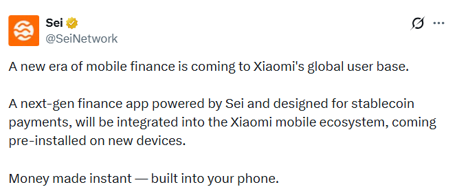 A next-generation financial app powered by Sei and designed for stablecoin payments will be integrated into the Xiaomi mobile ecosystem and will come pre-installed on new devices. This good news came a few hours ago.