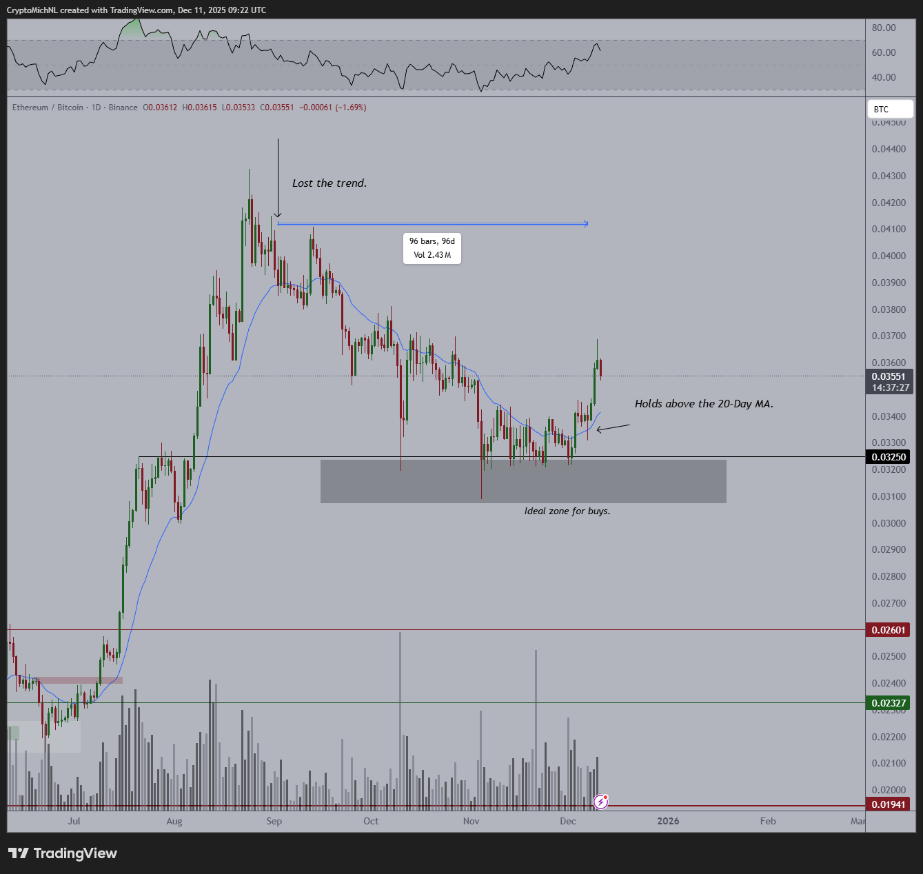 Of the other 3 charts, 2 are about Bitcoin and one is about ETHBTC. Altcoins have become a mess, and almost all of them, except for a handful of strong ones, have suffered heavy losses. Michael Poppe ETHBTC He was trying to understand what awaits us for altcoins in general by looking at the chart.