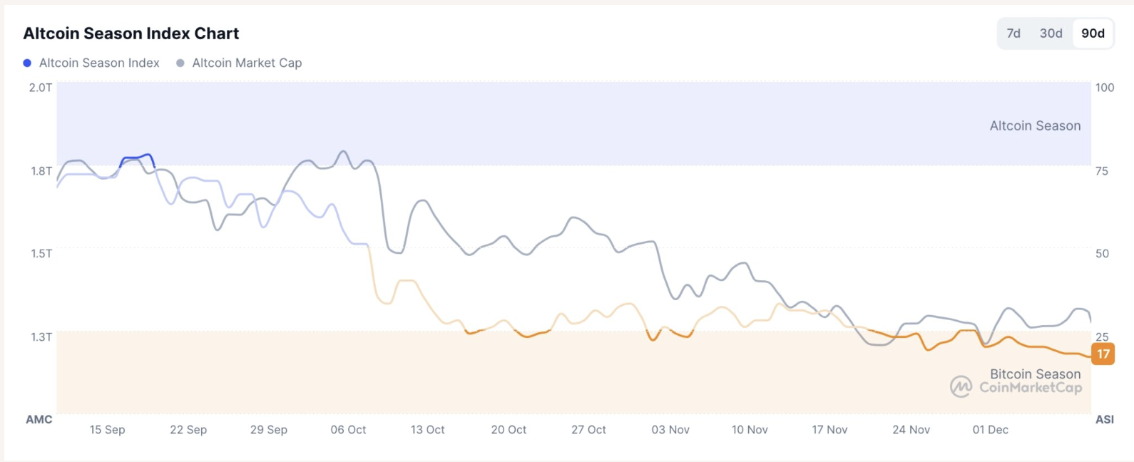 On the altcoin front, not only prices but also indicators measuring market interest are alarming. According to CoinMarketCap data, the Altcoin Season Index has been in free fall in recent months, falling to 17, the lowest level of the year. The fact that the index, which reached over 60 during the year, fell to this level shows that investors are clearly turning to Bitcoin.