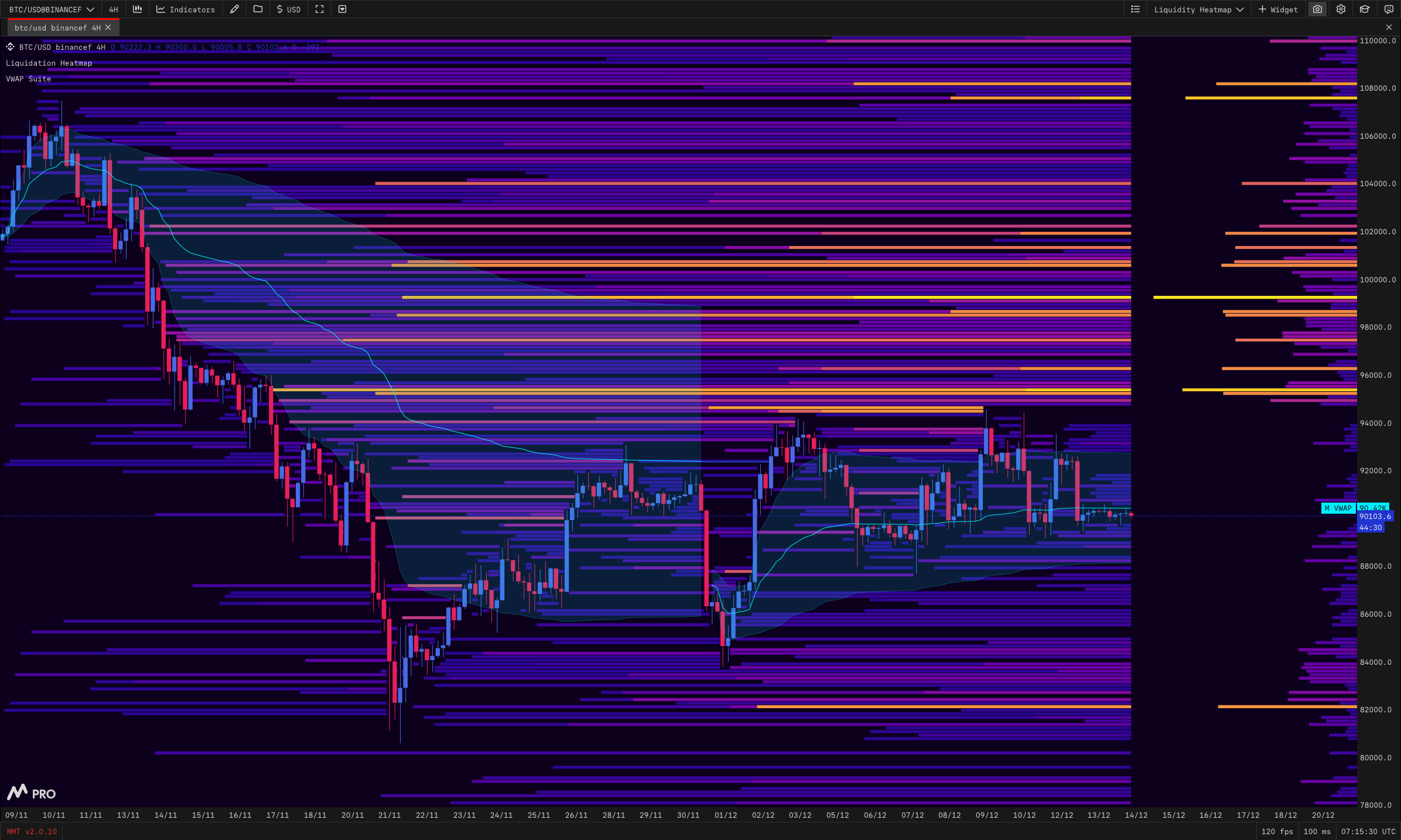 “Typical weekend activity — tight ranges, slow progress, quietly accumulating liquidity. We see absorption below 94K and a new sweep zone is forming in the 88K–90K range.
