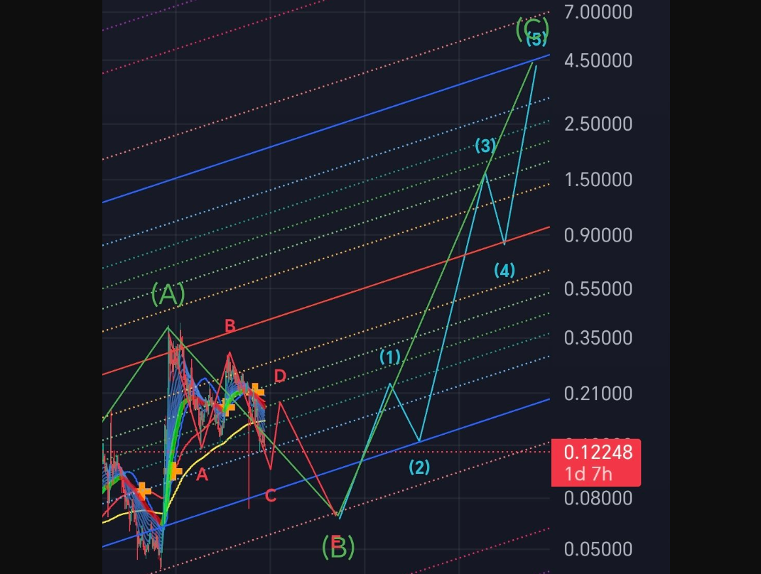 CaptToblerone thinks the bullish wave will push the price to $4.5 by 2028. The long-term uptrend is maintained and the local bottom is expected to be followed by a temporary D top and then a B bottom of the main ABC move below what Morecryptoonl predicted.