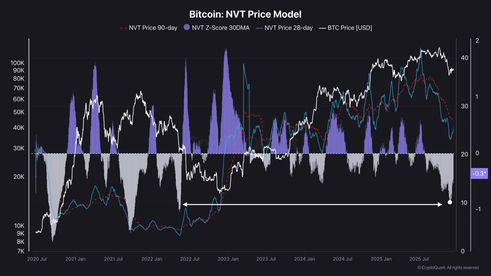 CryptoQuant analyst Darkfost drew attention to NVT data today. Analyst using NVT (Network Value to Transactions) to evaluate BTC’s valuation based on on-chain activity BTC It compares the market capitalization with the transaction volume on the network. Trying to determine the true standard deviation using the Z-score and the monthly and 90-day moving average, Darkfost noticed something interesting.