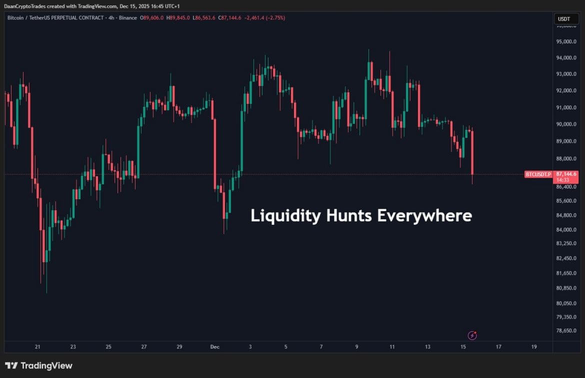 DaanCrypto warns against the liquidity hunting game by sharing the chart below.