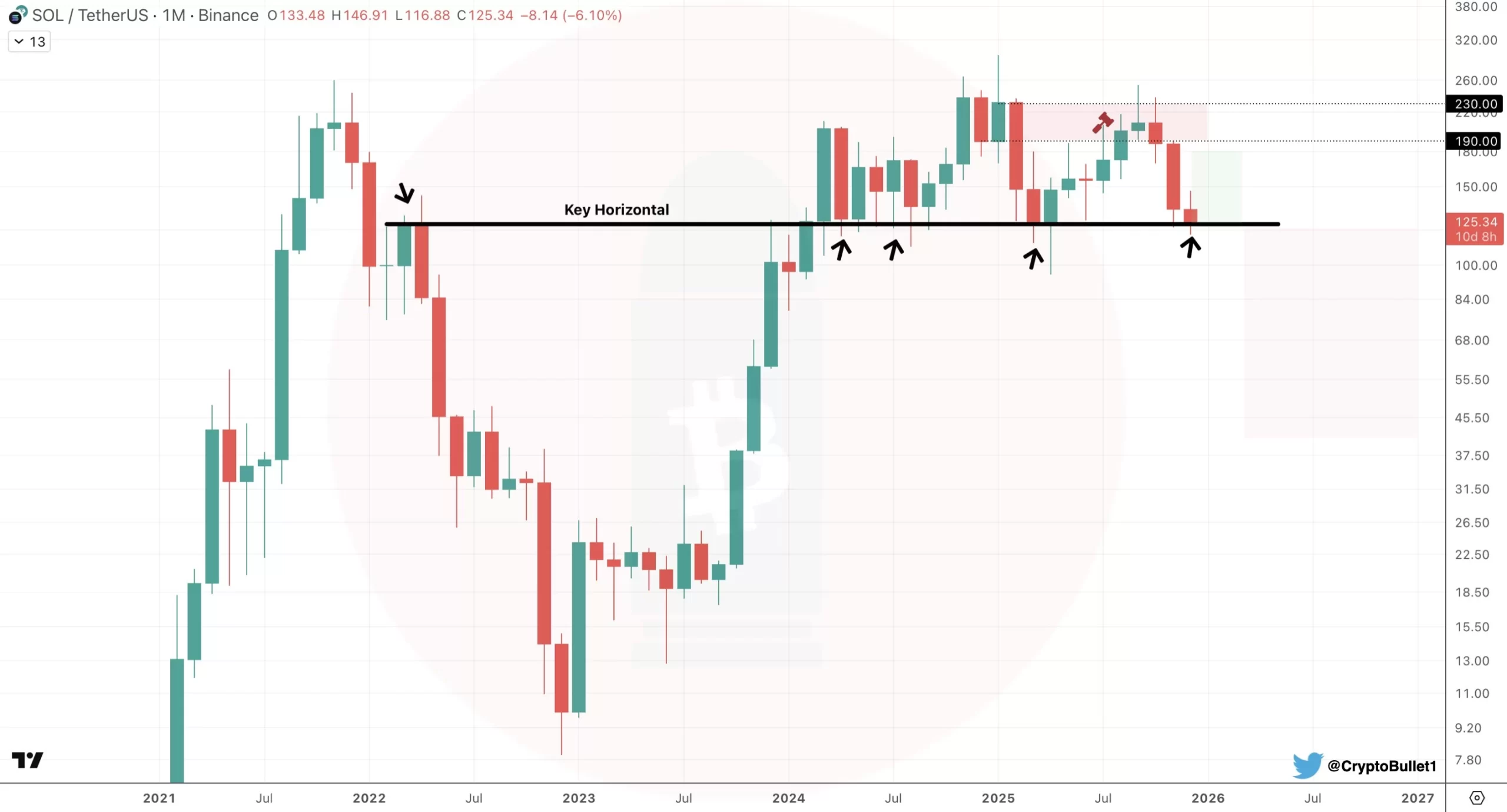 Currently SOL is testing the Key Horizontal Support again and I think SOL will bounce once again. Then it will break this support in 2026.”