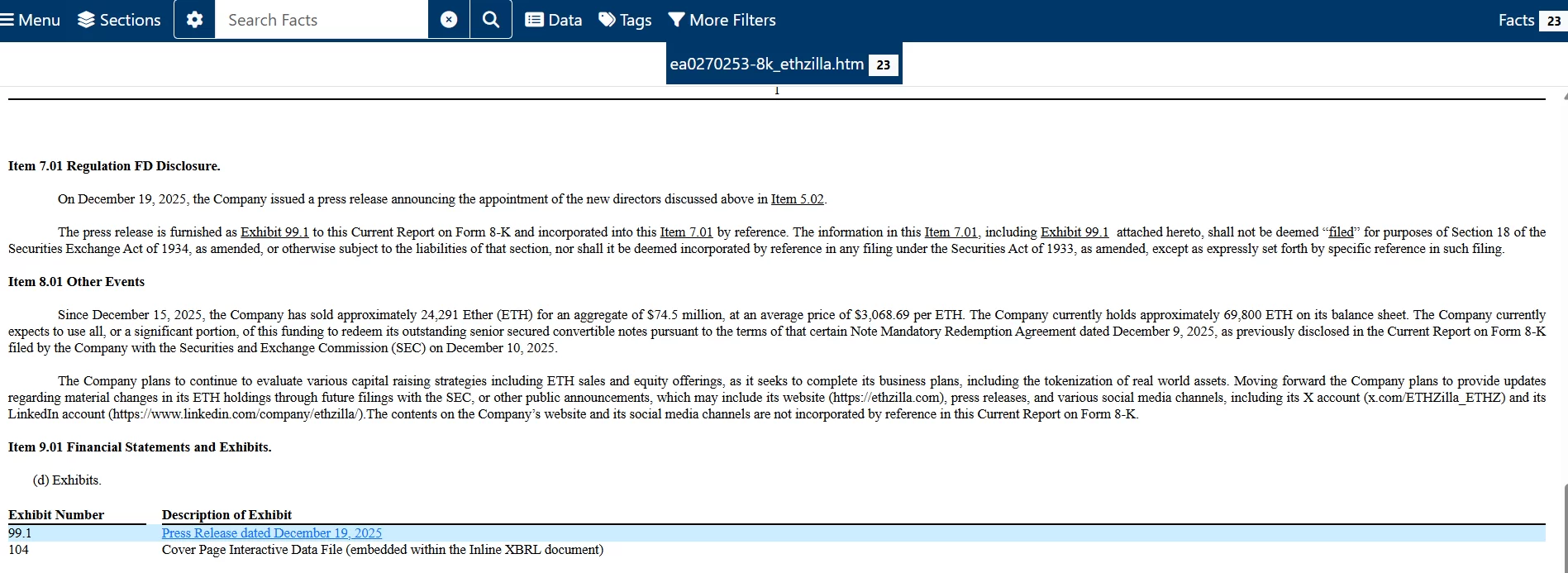 ETHZilla Sales
