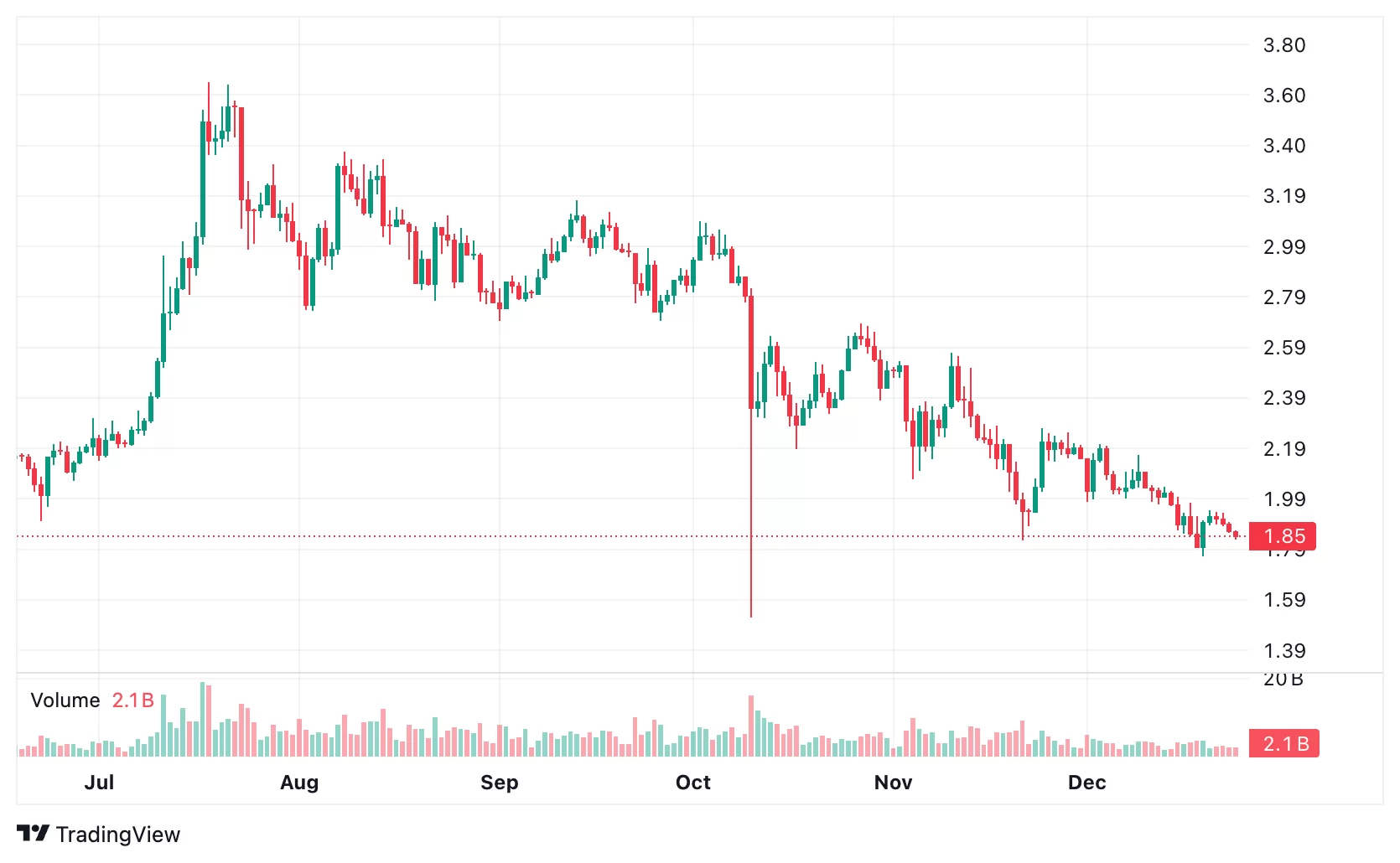 The background of the market is the year-end period. As liquidity decreases, positioning drags the price further and investor psychology shifts to short-term protection. Mixed signals on the analyst side also weaken confidence. a group rising wedge formationWhile another group argues that it may create downward pressure RSI He emphasizes that their incompatibility can be seen in local fatigue phases. The difference of opinion paves the way for rallies around $1.90 to fade more easily.