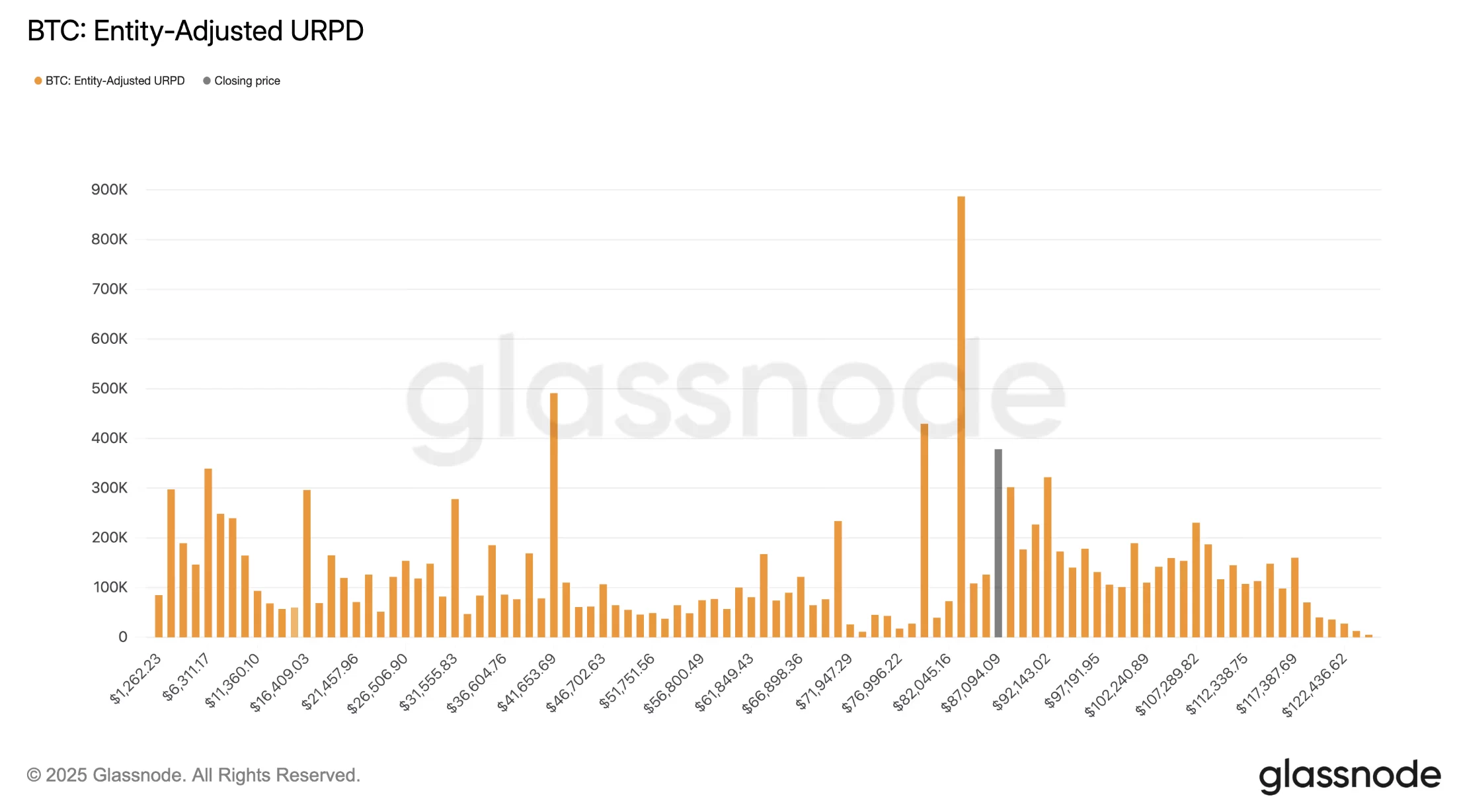 Powered by Glassnode UTXO Realized Price Distribution The indicator reveals the prices at which the current Bitcoin supply changed hands. This distribution, prepared with the entity-adjusted method, collects the balance of each investor at a single point based on the average cost and thus clearly shows the actual concentration levels of the supply.