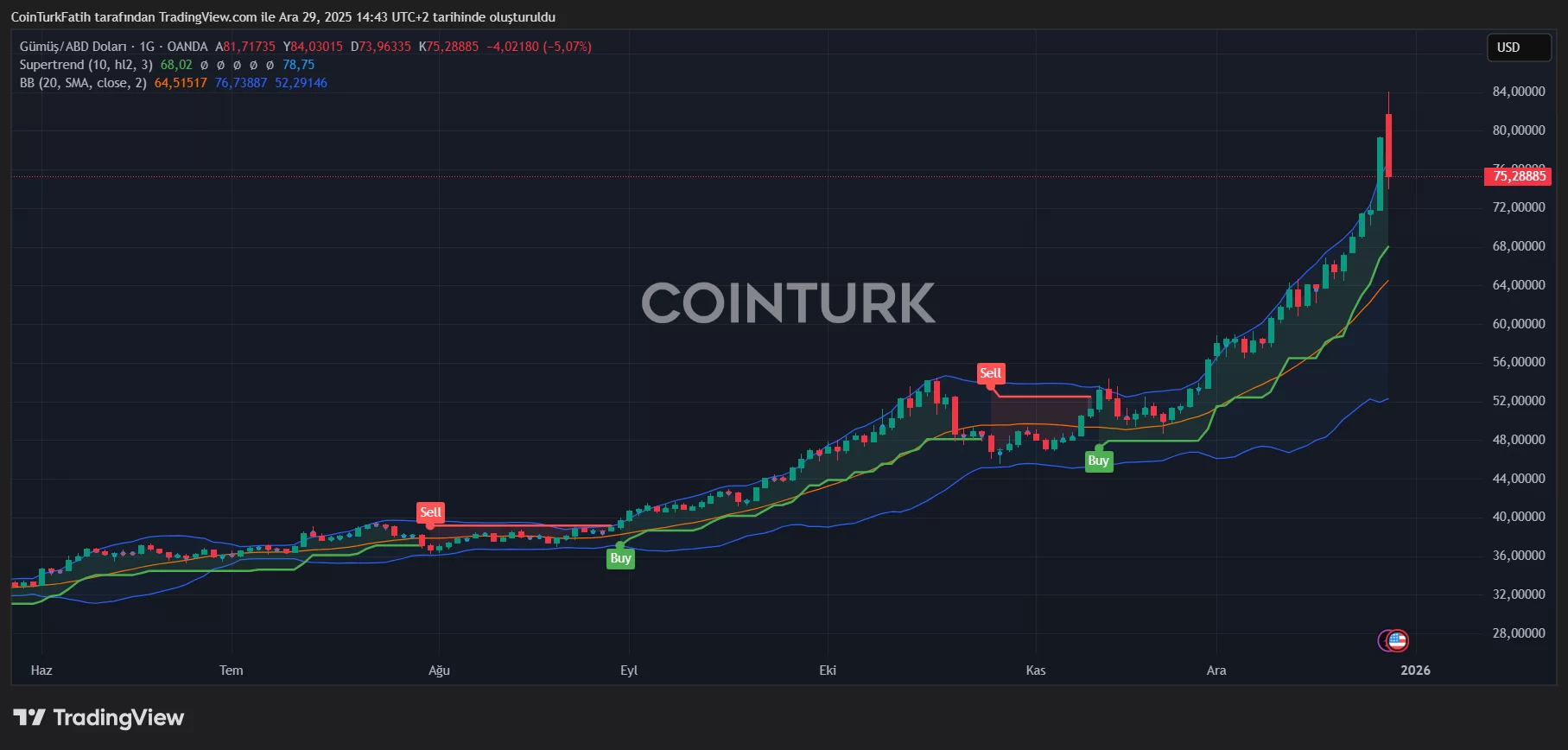 Silver, which reached $80 faster than expected due to supply shortage and speculative transactions, continues the day at $75 with a loss of more than 5%. Gold is down 1% and copper is at $13,000 per tonne. Venezuela tensions are still fresh and the US bombardment in Nigeria points to the temporary nature of the correction experienced by precious metals. As silver stocks approach record lows, speculative movements in silver are likely to continue in the new year.