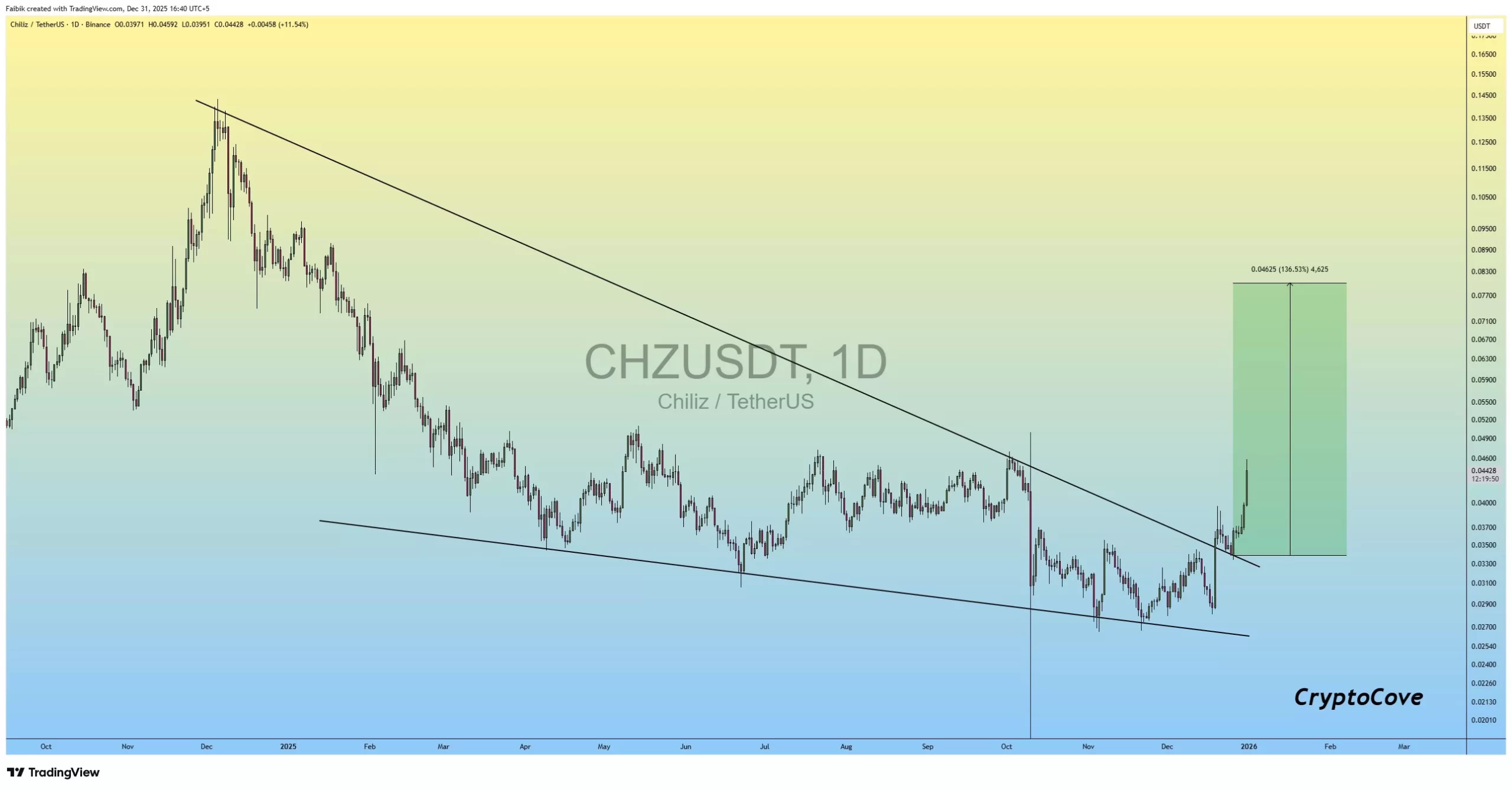 The analyst with the pseudonym Faibik wrote that the rise has begun and the CHZ price will increase by another 30% in the short term.