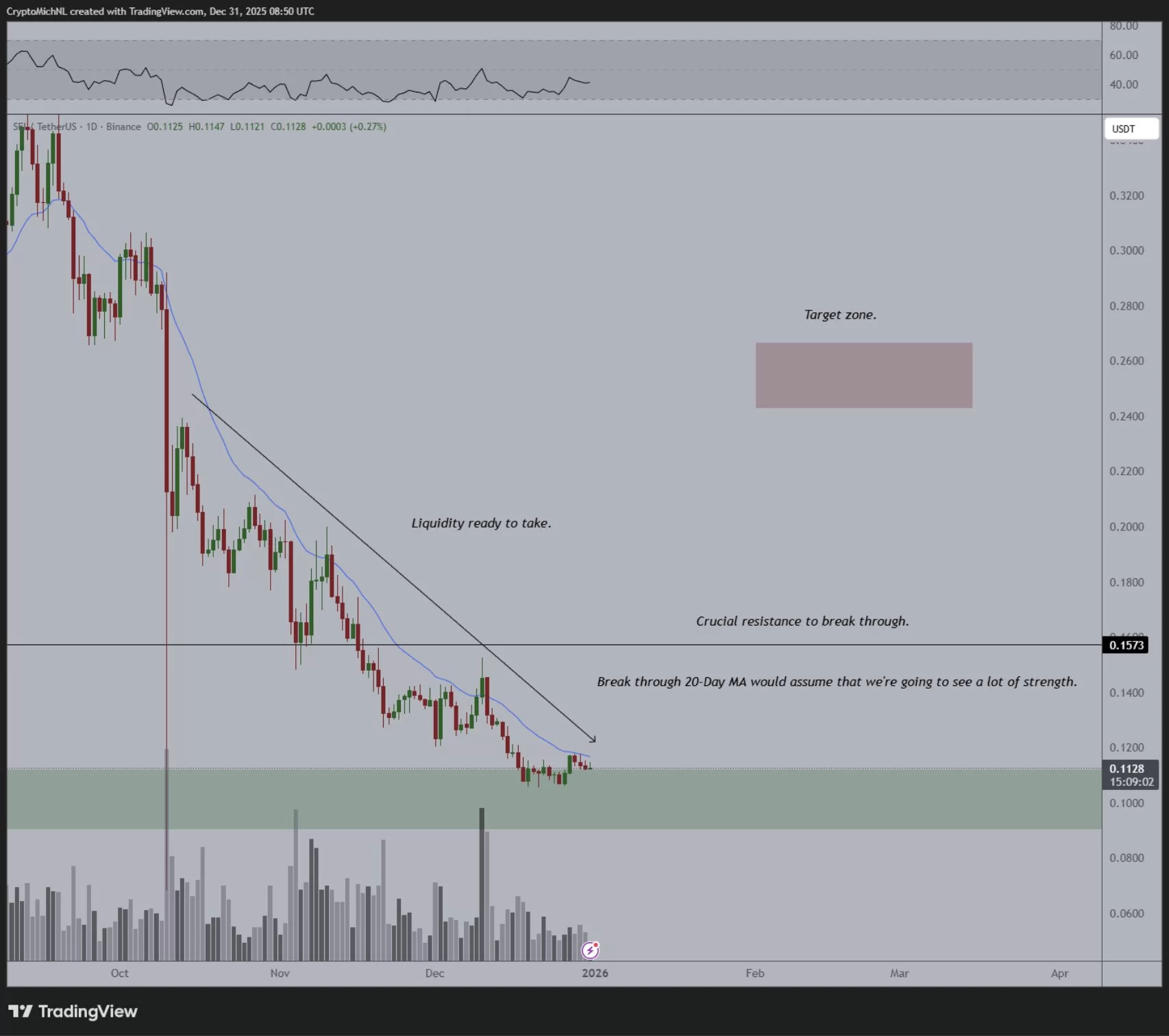 Despite how badly 2025 is ending, Poppe hasn’t stopped sharing bullish expectations throughout the year. On the last day of the year, Michael Poppe does what he knows and chooses his favorite altcoin. SEI Coin He says that the rise will begin in January when the 21-day moving average is broken strongly. If he is right, the popular altcoin could surpass $0.24 again and this would mean the end of the downtrend.