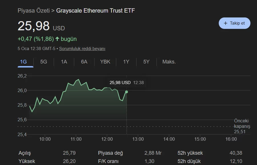 in October Grayscale Ethereum Trust ETF After Grayscale became the first company to receive staking permission for the Grayscale Ethereum Mini Trust ETF, other asset managers also took action. The annual APY for ETH staking is around 5%, and as competition increases, the proportion of payout distributed will also increase. Moreover, this figure stems from staking rewards earned between October 6 and December 31. When annualized, the figure would roughly equate to 1.3%. For investors who buy with the motivation to profit from the ETH price increase, this will mean passive income while waiting for the rise.