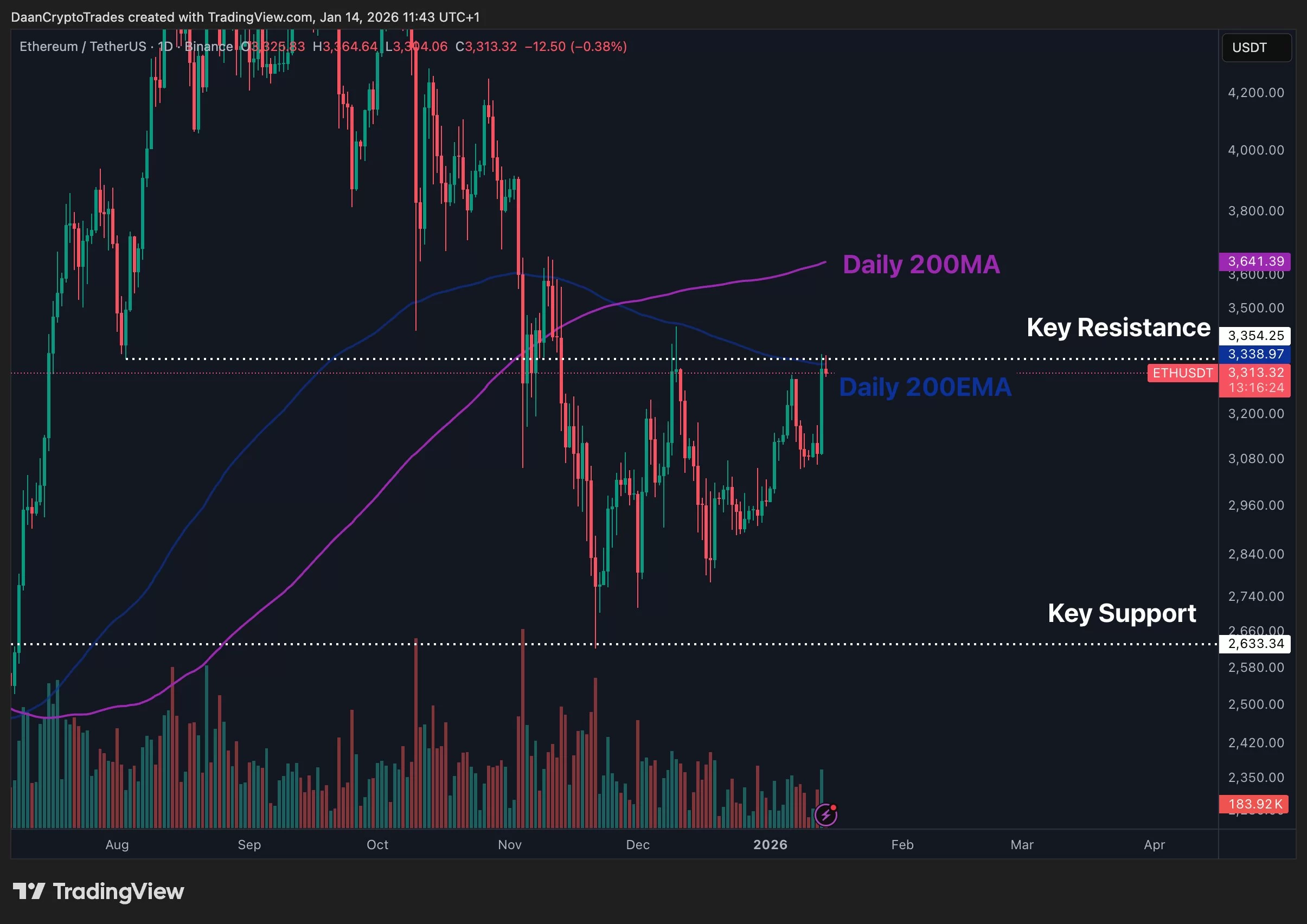 DaanCrypto believes that with the retracement of $3,350, we will see a higher top to catch the 200MA. BTC At the time of writing, it is at $95 thousand and ETH is at $3,300.
