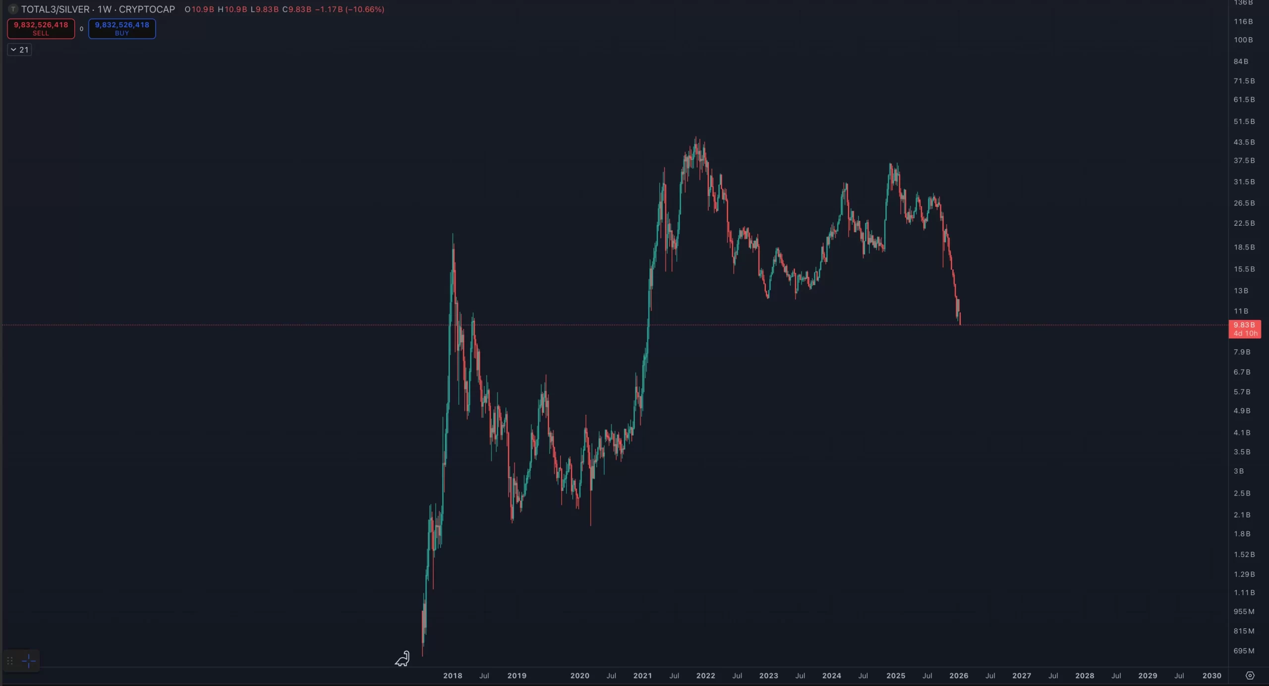 Benjamin Cowen altcoins He shared the chart below showing his position against silver and said that current market conditions will not give altcoin investors what they want.