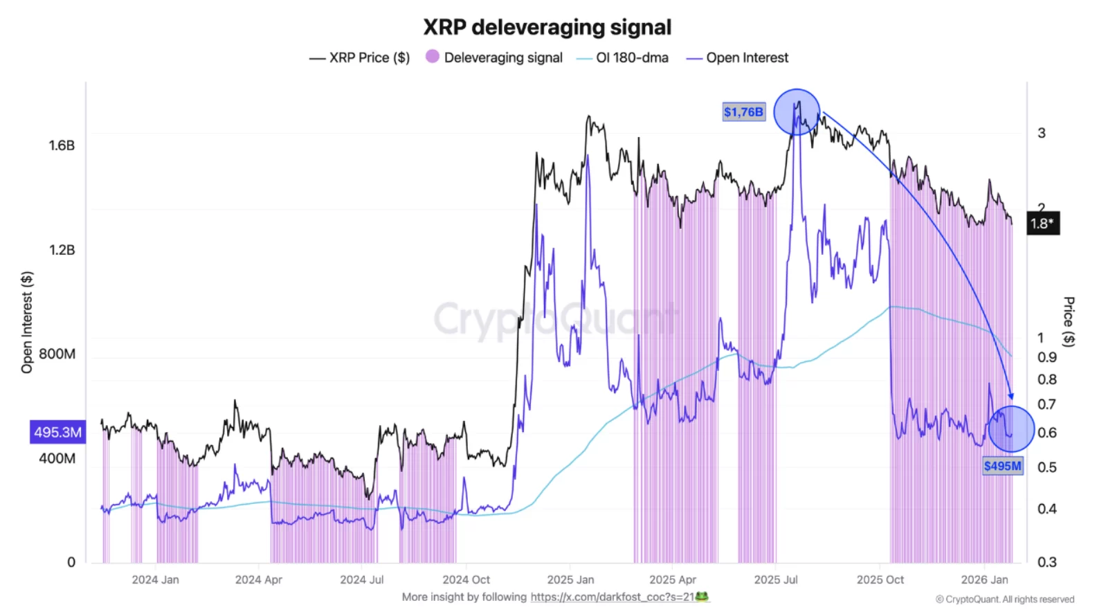 CryptoQuant analyst Darkfost today especially XRP Coin drew attention to open positions. XRP Coin open positions, which dropped below half a billion dollars on the largest exchange, reached a record level of 1.76 billion dollars on the Binance exchange on July 17. This contraction in the derivatives market was accompanied by a significant price correction, with XRP falling from $3.55 to $1.83, a decline of nearly 50%.