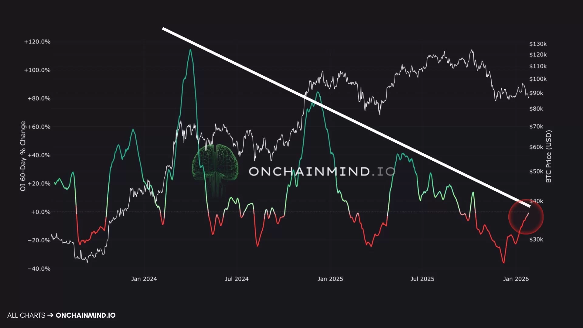 Bitcoin leverage ratio falling silently. Since the introduction of ETFs, the 60-day % change in futures open interest has been recording lower highs. This is a clear sign that speculative intensity is decreasing from the system. It is unclear whether this situation will lead to a new decline, but the break in the trend and the rise in the spot price will indicate that we have come to the end of the boring days.