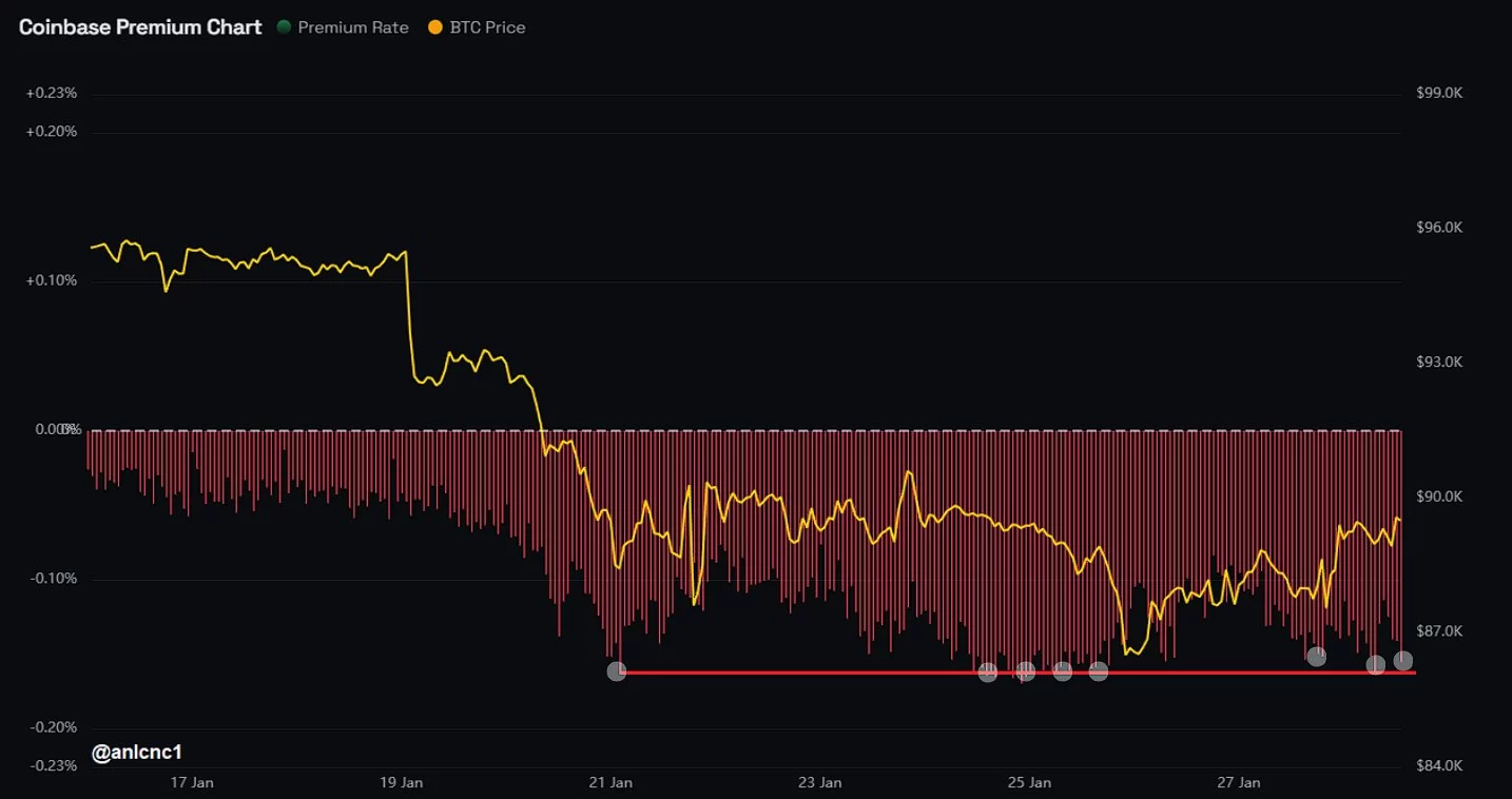 “Bitcoin Coinbase Premium Index remains in deep discount opportunity territory.