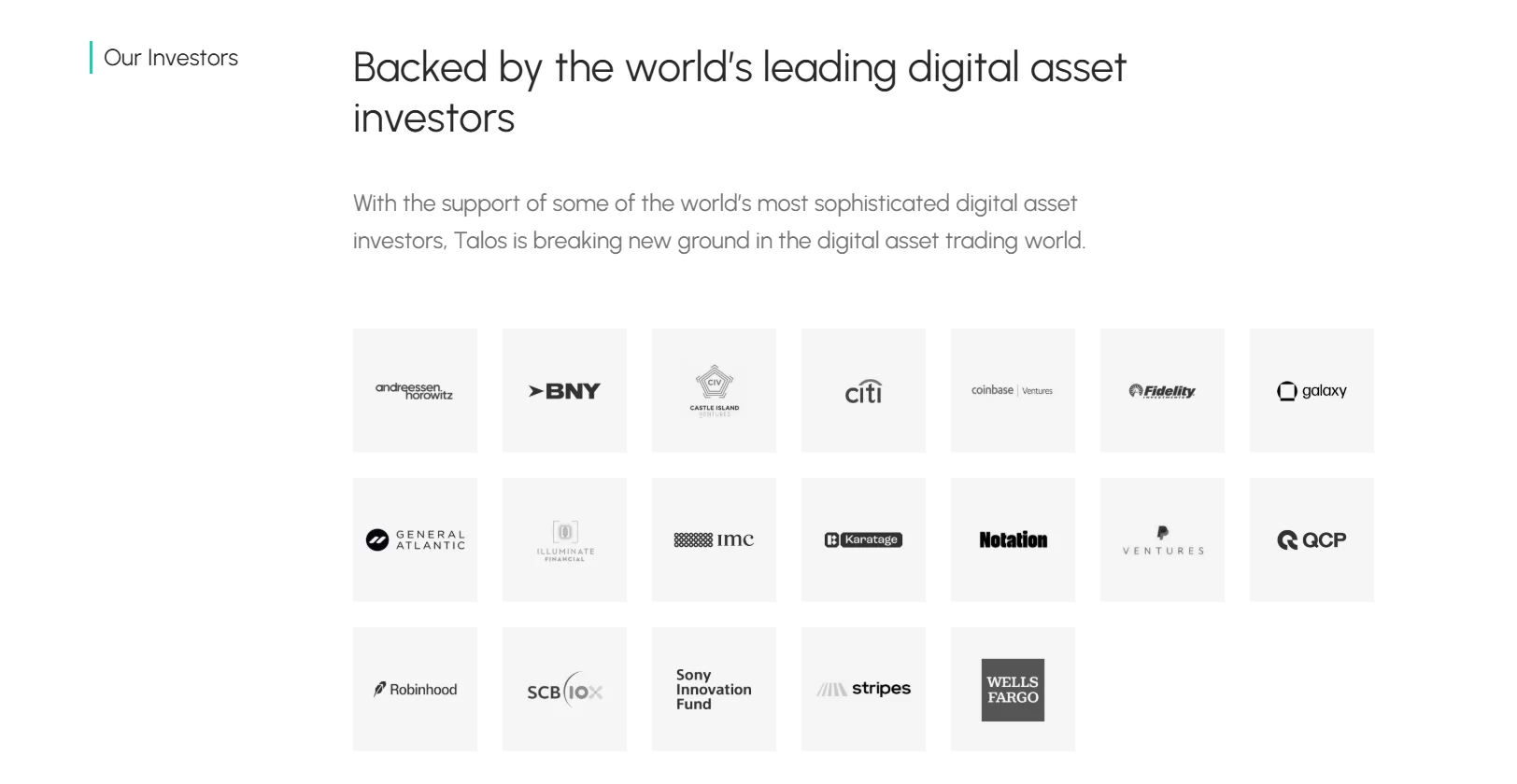 Led by General Atlantic in the B series investment round in 2022, BNYCiti (C), Wells Fargo Strategic Capital, and DRW Venture Capital, as well as crypto-focused players such as SCB 10x and LeadBlock Partners, also took part. If you remember the environment of 2022, you can understand why corporates continue to invest in Talos today.