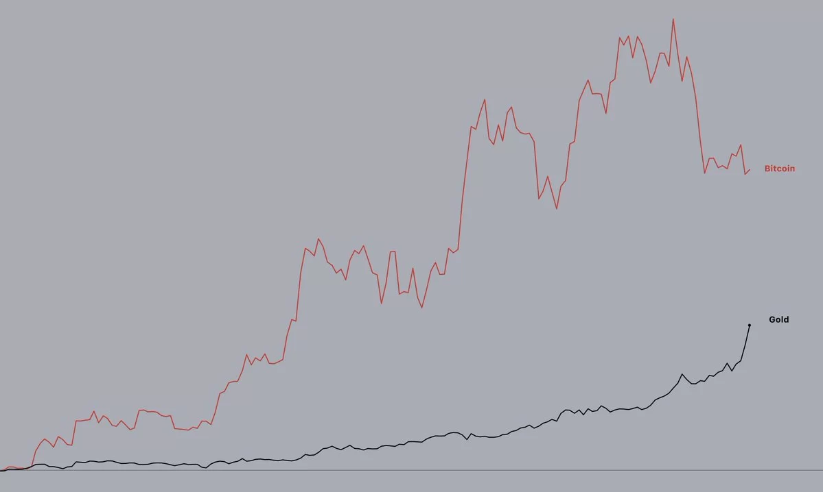 Despite gold’s recent gains and BTC’s losses, here’s how they’ve performed since then: