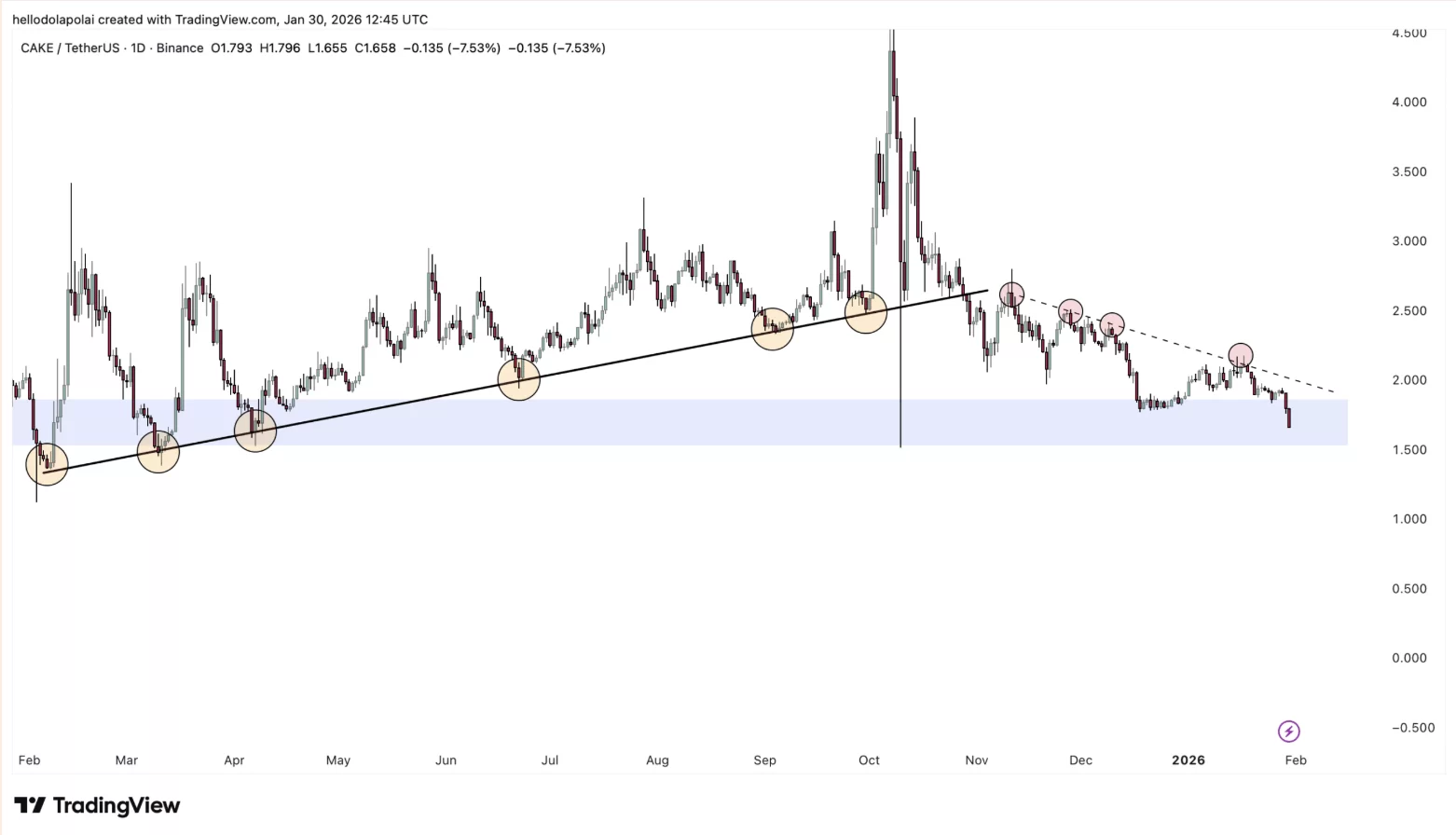 With the latest decline, CAKE price fell to the lowest levels seen since April 2025. Despite this, the fact that the price has entered a demand zone where strong purchases have occurred in the past shows that a completely negative scenario is not drawn from a technical perspective. This region has previously been the starting point of serious rises. If a similar picture occurs, it may be possible for the CAKE price to compensate for some of the decline that started in November 2025.