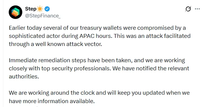 “Earlier today, during APAC hours, several of our treasury wallets were compromised by a sophisticated actor. This attack was carried out through a well-known attack vector.