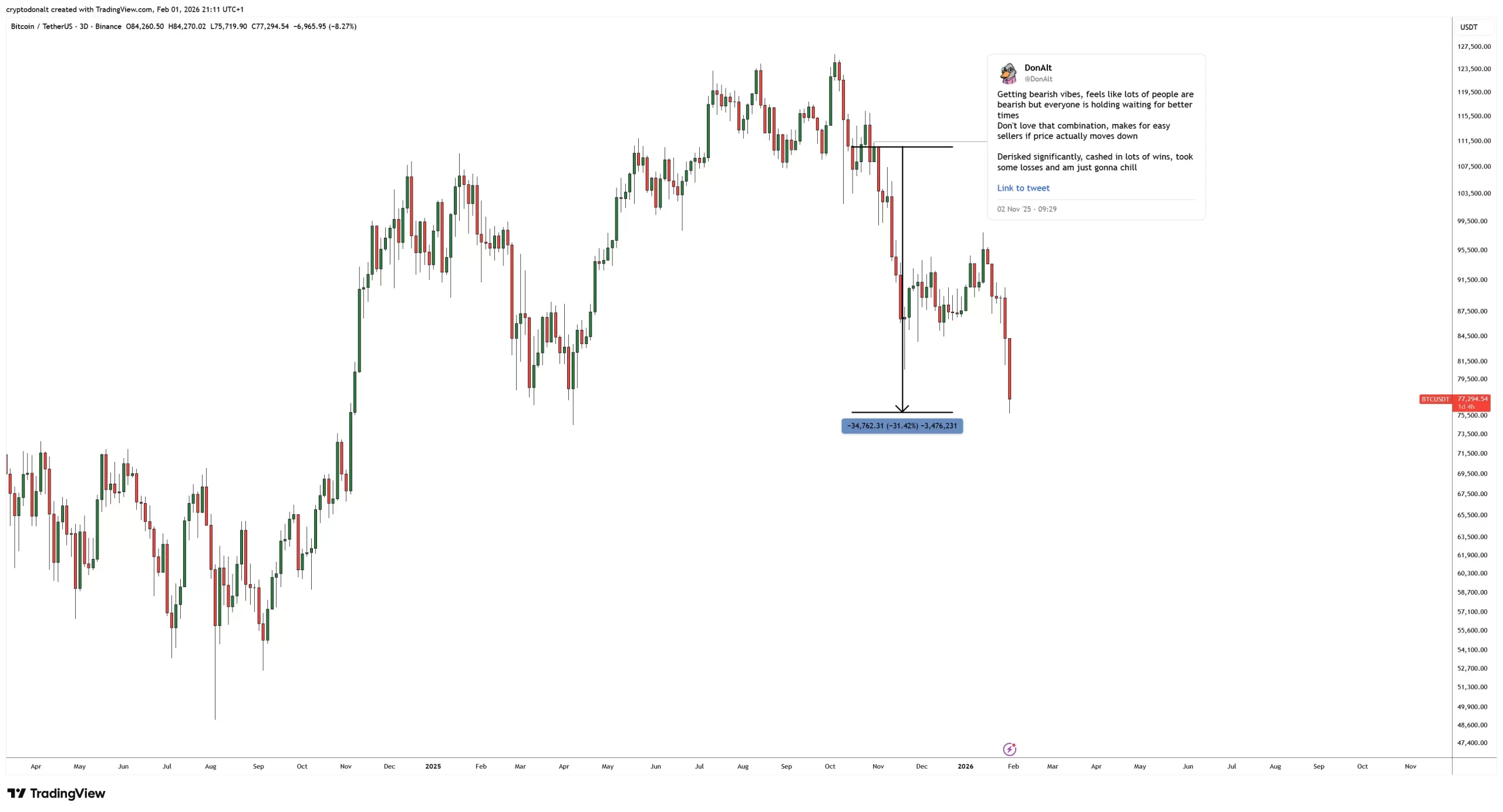 Since the markets did not return to their previous levels in early November after the October 10 incident, DonAlt talked about his feelings that worse days might come. That’s why he reduced his risks and wrote that he converted most of his assets into cash. He says he is happy with the decision he made today and that it is not the right time to enter the markets yet.