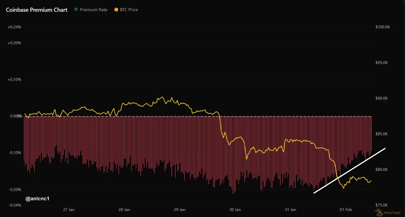 “While Bitcoin fell to the 82,000-76,000 range, Coinbase Premium started to show an upward trend.
