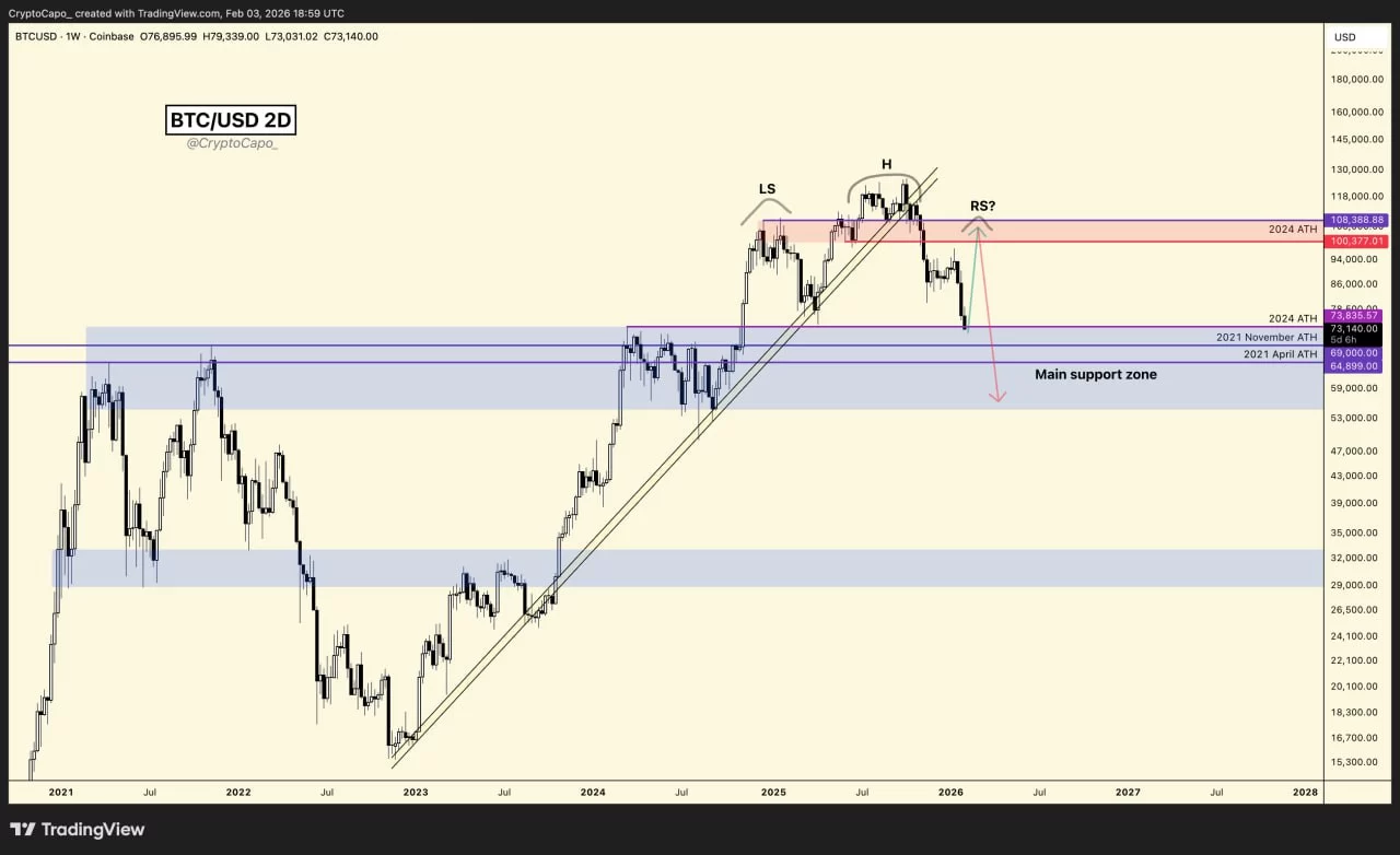 After dropping a needle to $72,945, the price is trying to reclaim $75,000 at the time of writing. The analyst with the pseudonym Crypto Capo, whose many predictions were correct in 2022 but became a laughing stock as he was wrong in 2023, warned investors.