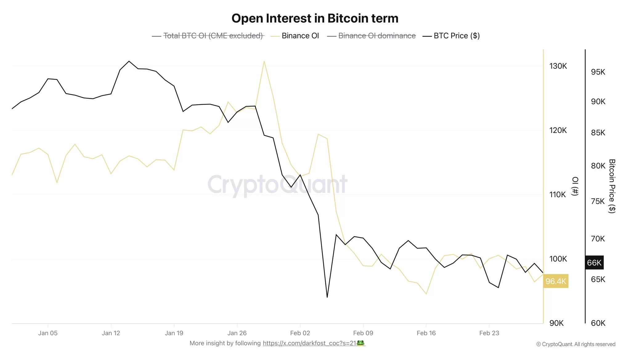 “Binance Open positions decreased by 25% as investors reduced their leverage ratios as uncertainty increased. Whether looking at macroeconomic developments or geopolitical tensions, it was clear that this was not a period that encouraged risk-taking, and many investors seem to understand this. Concerns about ongoing inflation, combined with the escalation of the US-Iran conflict, have further increased the uncertainty surrounding the current environment. This trend of increased risk aversion can be observed by analyzing open positions on Binance, which represents the largest derivatives market in terms of volume.