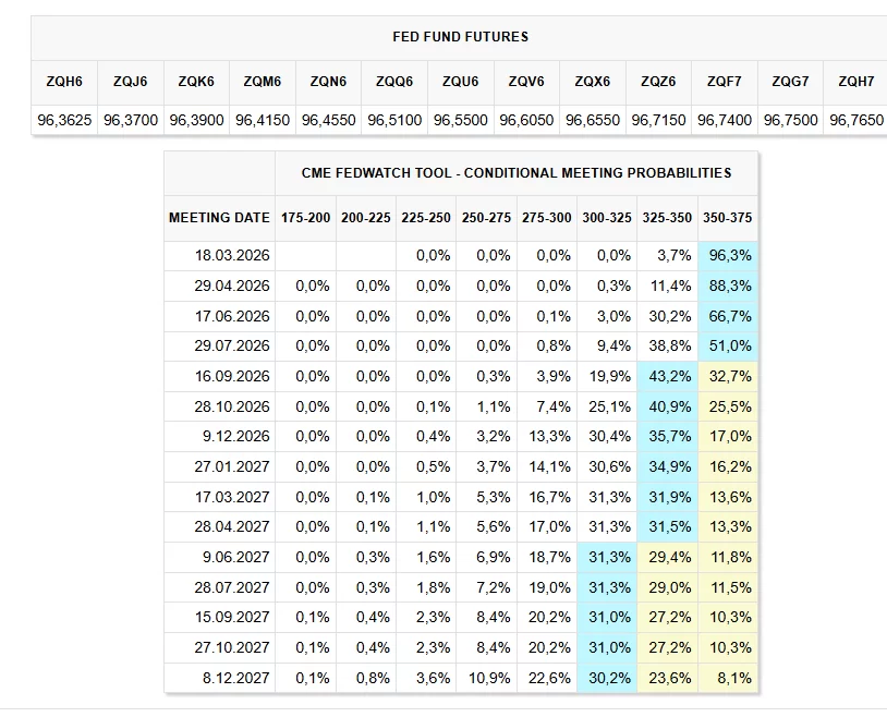 There is a 96% chance that interest rates will be kept constant at the March 18 meeting. The earliest discount will be at the September 16 meeting. Of course, if inflation weakens and employment data continues to arrive this way, rates may change in favor of risk markets.