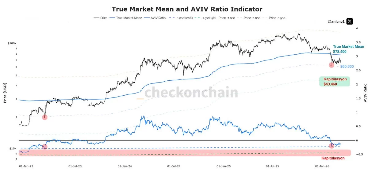 “If the price rises above the True Market Mean again and maintains its permanence there, it will be an important signal that the market structure is gaining strength again. For now, the main key zone in this metric is $78K and the level continues to be updated downwards every day.” – @anlcnc1