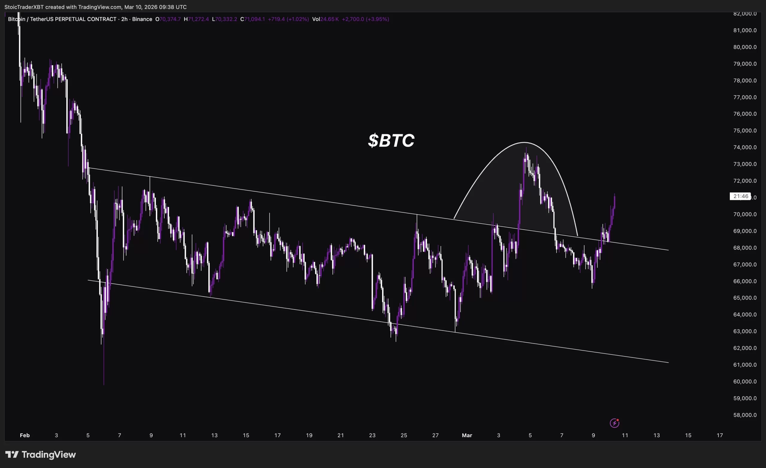 Returning to the chart, the analyst nicknamed Columbus draws attention to Bitcoin, which wants to break the descending channel. According to him, maintaining the trend line will carry the momentum to $74,000 and beyond, but the macro front is mixed. Oil, inflation, delayed interest rate cuts, delayed QE, tariffs and dozens of other things.