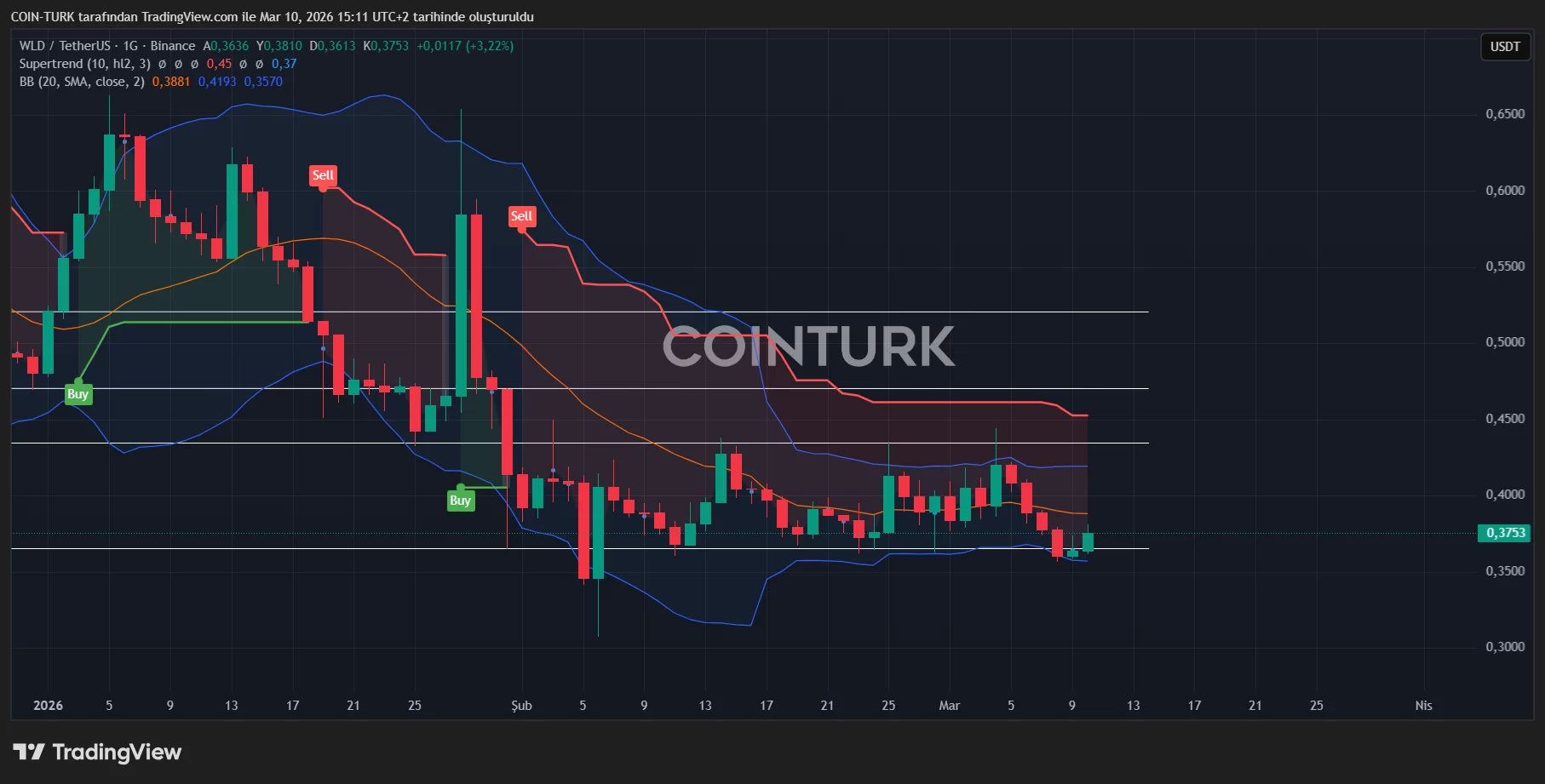 WLDIt is trading between the $0.435 resistance and $0.366 support levels. Martinez’s short-term bullish scenario will be triggered by a 4-hour candle close above $0.435. While the analyst maintained $0.417 as a stop, he declared profit-taking zones as $0.47 and $0.52.