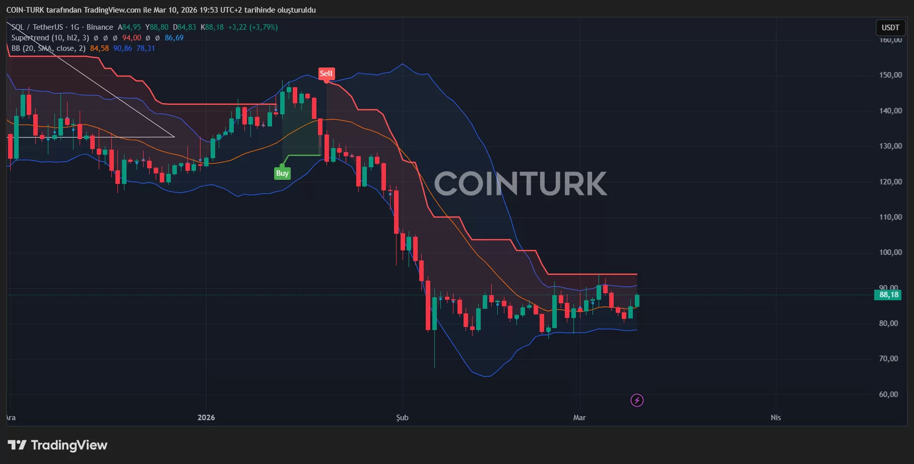 The chart is not much different for SOL Coin than XRP. The price, which made a local bottom, has been consolidating here for 33 days. We know that such long consolidation processes eventually bring major breaks. So either $93 or $77 will break and SOL Coin will rush to its target.