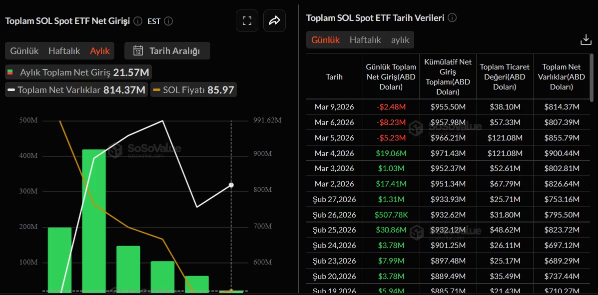The outflows are not specific to XRP Coin and there are also sell-offs on the SOL Coin side, but these sell-offs are not that strong. While there was an inflow of 19 million dollars on March 4, only 15 million dollars of this amount turned into sales in the next 3 business days. Moreover, March is still at 21.57 million dollars. SOL Coin Net entry month for. Since launch, SOL Coin has not experienced any net monthly outflow. This trend is normal as it is the strongest alternative to Ethereum in the RWA and payment infrastructure story.