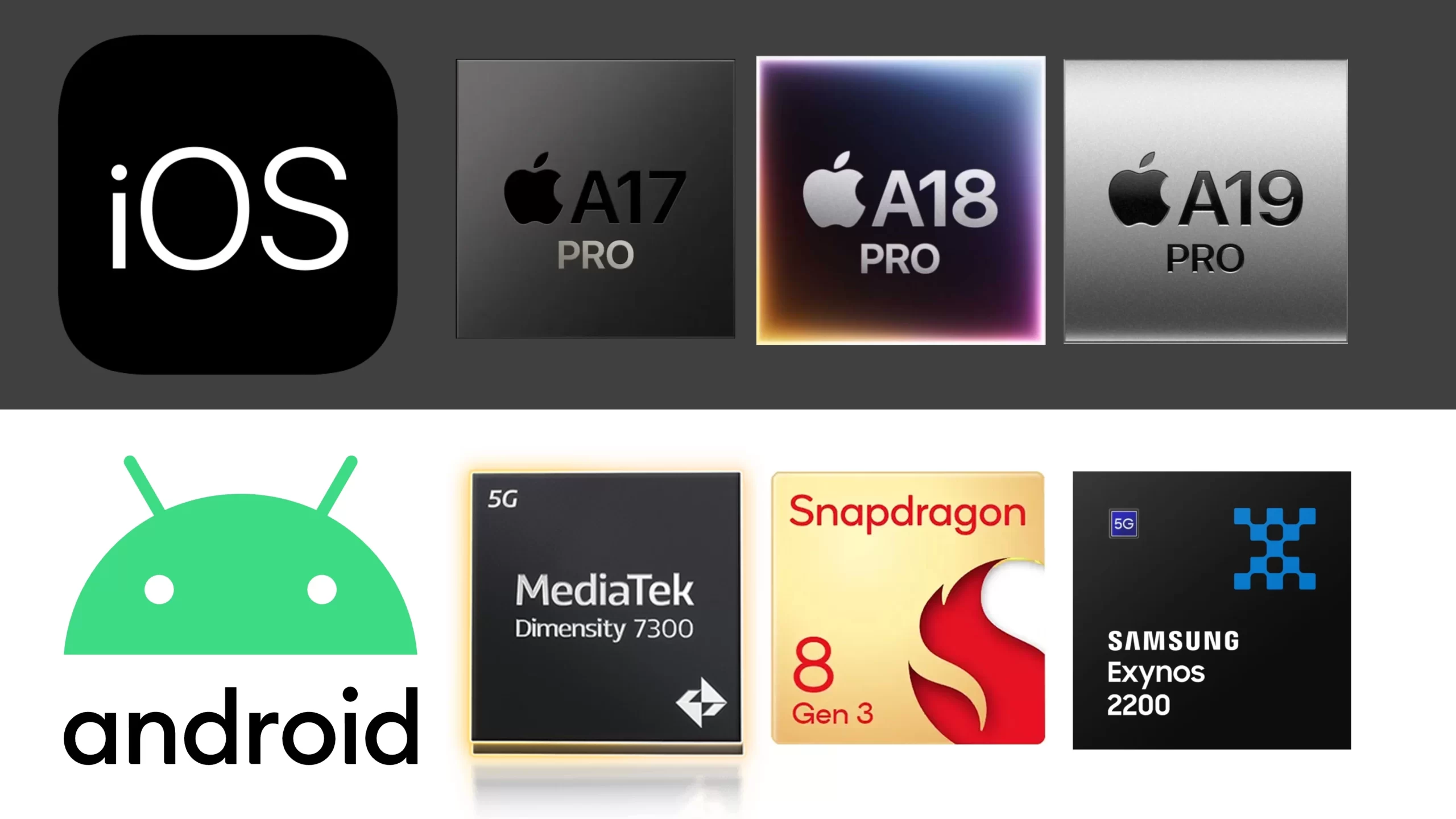 Operating systems used by mobile devices. MediaTek is quite common.