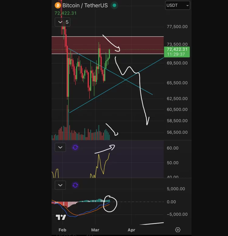 Roman Trading at 71 thousand dollars at BTC price However, he continues to share his prediction of decline.