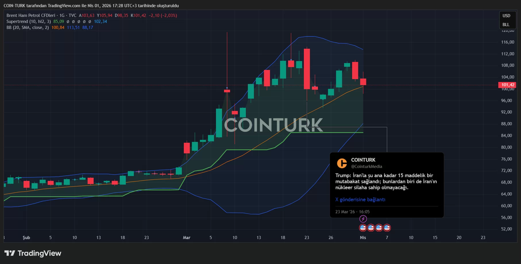 When we look at the oil chart to see how the market reacted to the statements, it is clear that the sentiment has shifted to positive compared to the beginning of the week. This stems from Iran’s gradual approach to a ceasefire (Pezeshkian’s statement, statements like Russia should be a mediator, etc.).