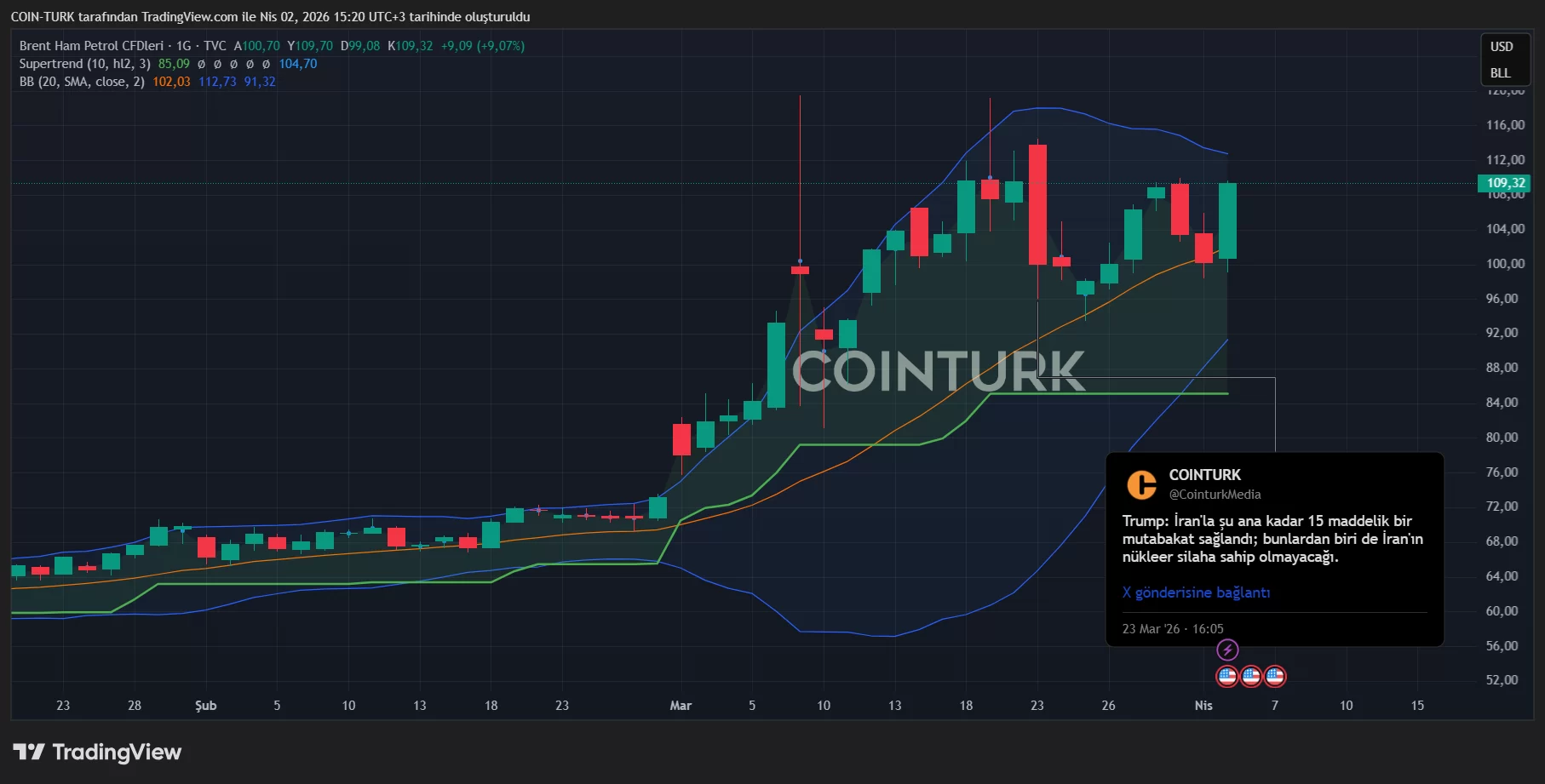 Talking about the 1st and 2nd World War and other major wars, Trump implied in his statement that 1 month is an extremely short period of time. In other words, US soldiers sent to the region are being sent to attack and there may be no agreement with Iran. Thus, the date of April 6 is wasted. Naturally, we saw that the oil price quickly reached the 110 dollar limit.