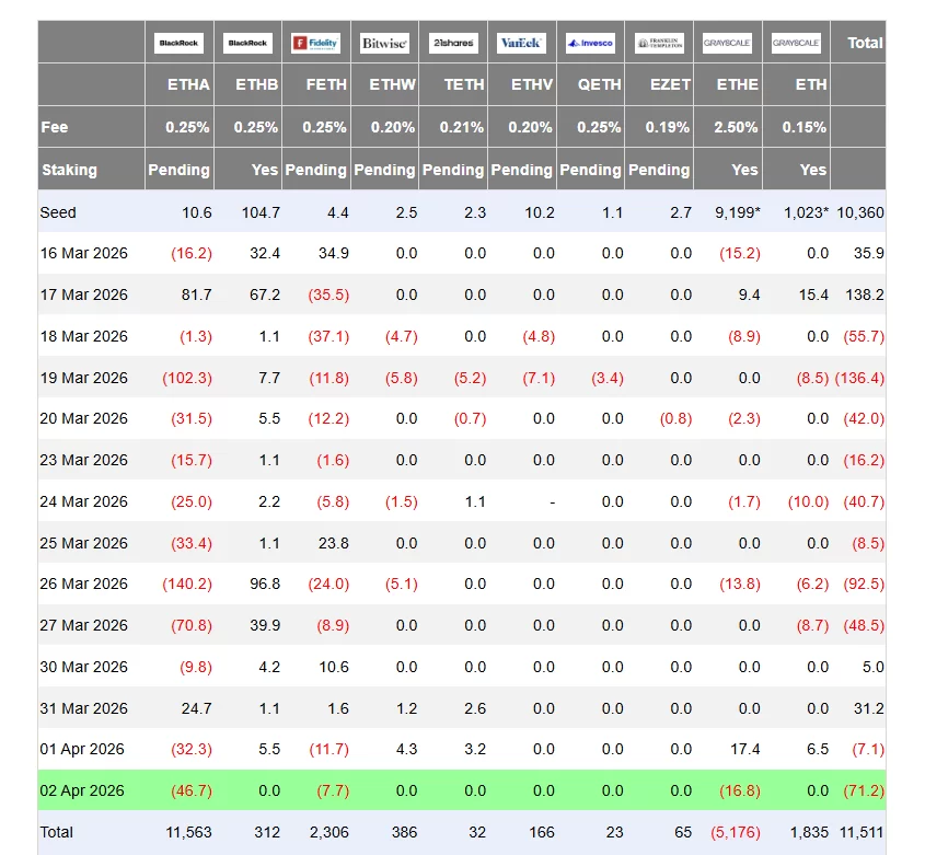 Yesterday ETH from ETFs There was an output of 71.2 million dollars. The ETF size has fallen to August 2025 levels, and is constantly falling with stable outflows.