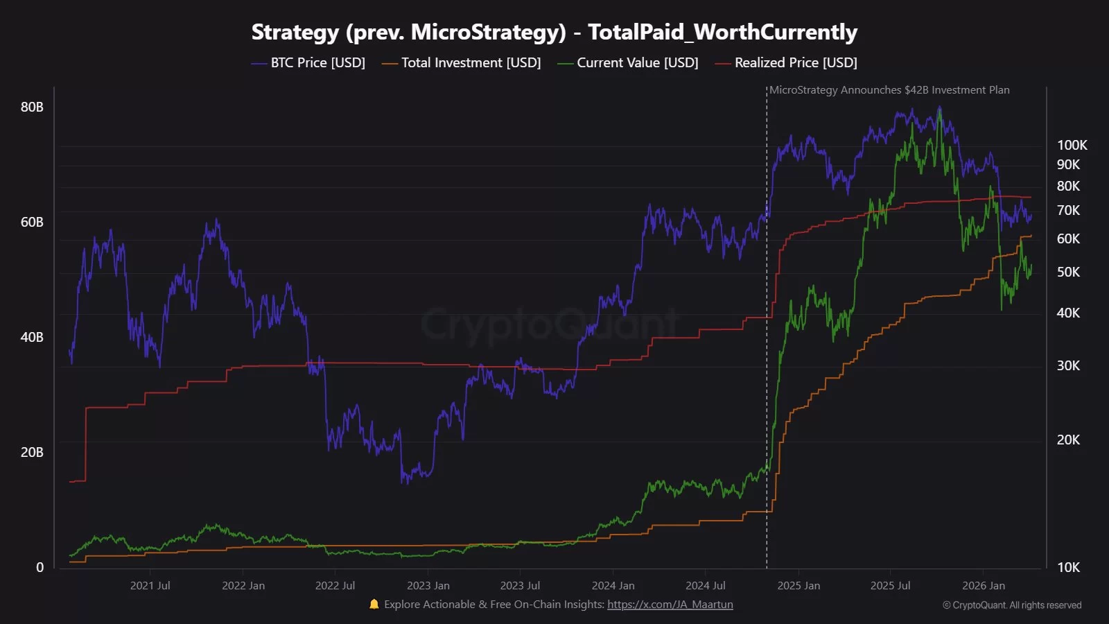 Michael Saylor’s company continues to acquire. Strategy, 4,871 for $329 million at an average cost of $67,718 BTC bought more. As of today, the company’s assets have increased to 766,970. Total average cost fell to $75,644, and cash spent on all purchases exceeded $58 billion.