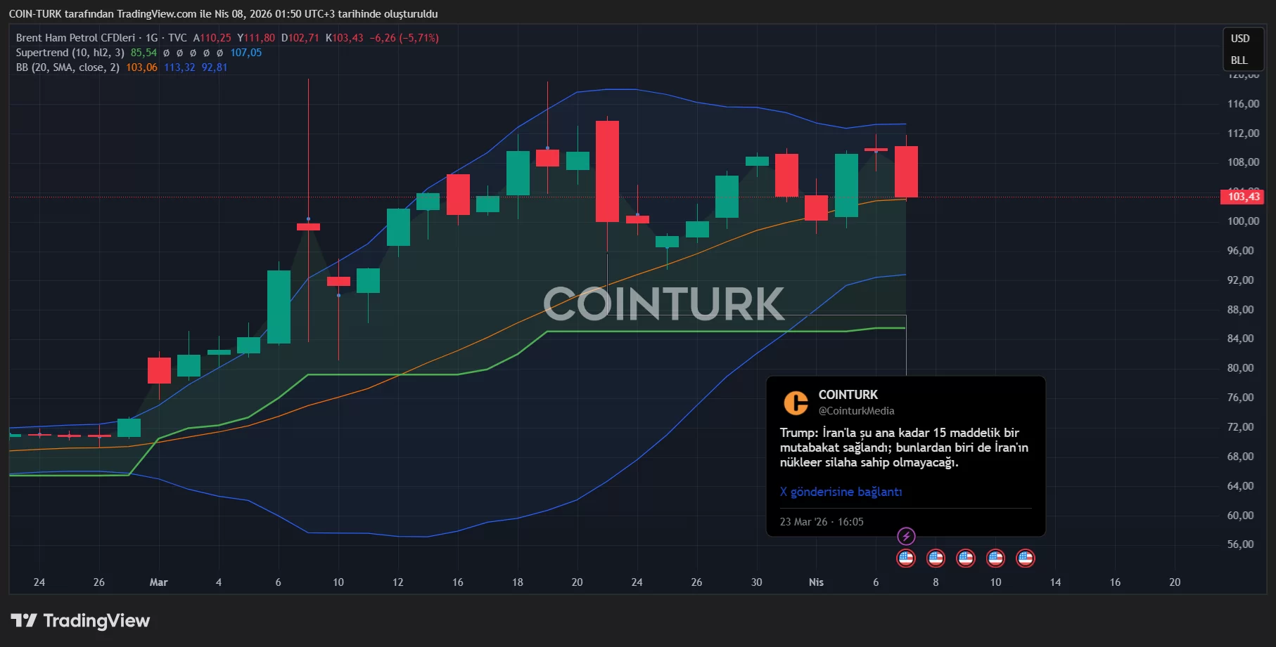 Alright oil What happened? It quickly lost $107 and lost $103. There is a potential for the decline to continue down to $93 in the coming hours. BTC It rose to $71,298 daily. CNN has just announced that Israel has also accepted a temporary ceasefire.