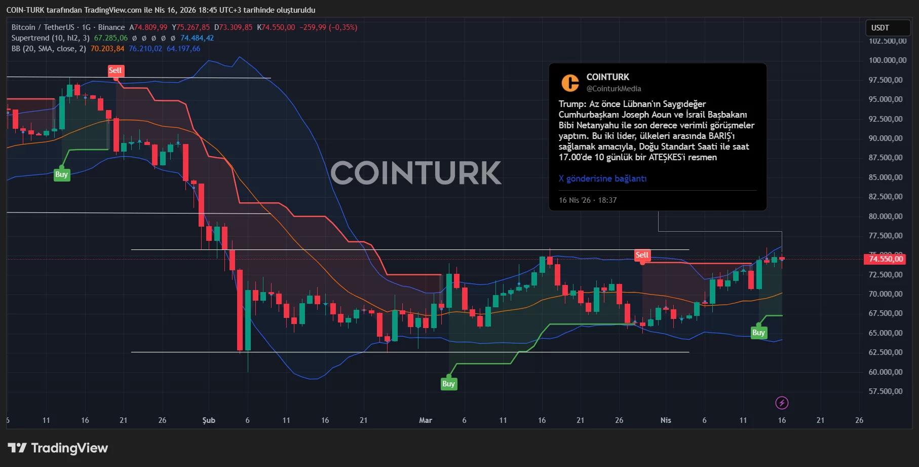 Donald TrumpHe announced that he met with Lebanon’s President Joseph Aoun and Netanyahu and that the parties agreed on a ceasefire. The ceasefire will start at 00:00 Türkiye time (TSI). This was an important step for negotiations with Iran to progress. In this way, Bitcoin returned to $ 74,500. The first meetings were in Washington.