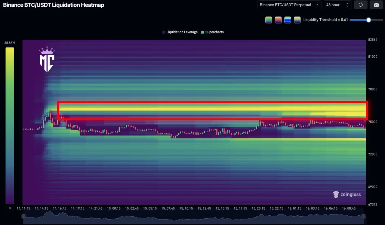 The liquidity concentrated above whets the appetite of large liquidation-hunting investors and stock exchanges. When you look at it from this perspective, it is more likely for BTC to overcome the $76,000 resistance.
