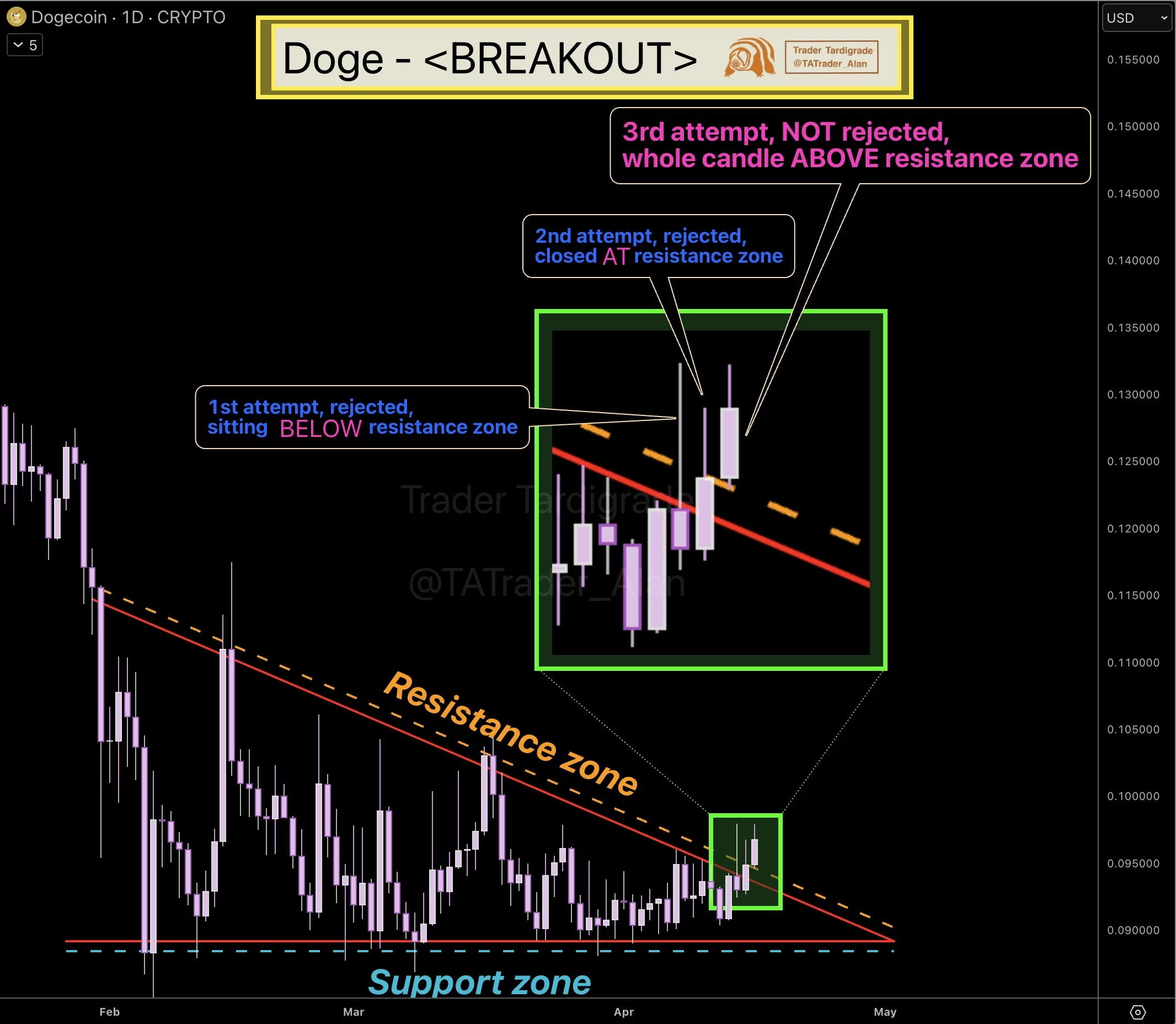 The analyst with the pseudonym TATrader_Alan watched the DOGE chart today. BTC shared before his fall. Drawing attention to the three test candles marked on the chart, the analyst argues that the Dogecoin chart has evolved from seller dominance to buyer power. The analyst, who thinks that a convincing break has occurred in the descending triangle, argues that the downtrend is now behind. If DOGE proves it right, attempts at $0.2 could be seen in a few months.