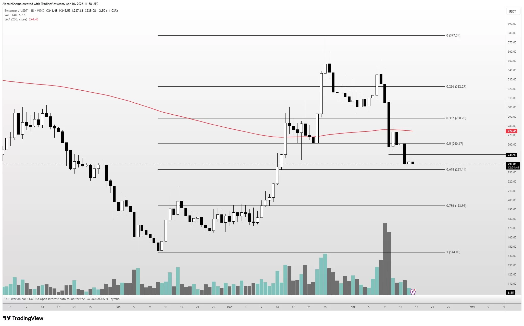 TAO Coin price It dropped rapidly with the news on April 9-10. We first saw signs of the Covenant AI team’s departure with founder Sam Dare’s accusations of “centralization theatre”. The official announcement came the next day and the team sold approximately $10 million (37,000 TAO) of altcoins. With this news, the price dropped sharply by approximately 18%-20% in one day. The effects of the decline continued until around $240.