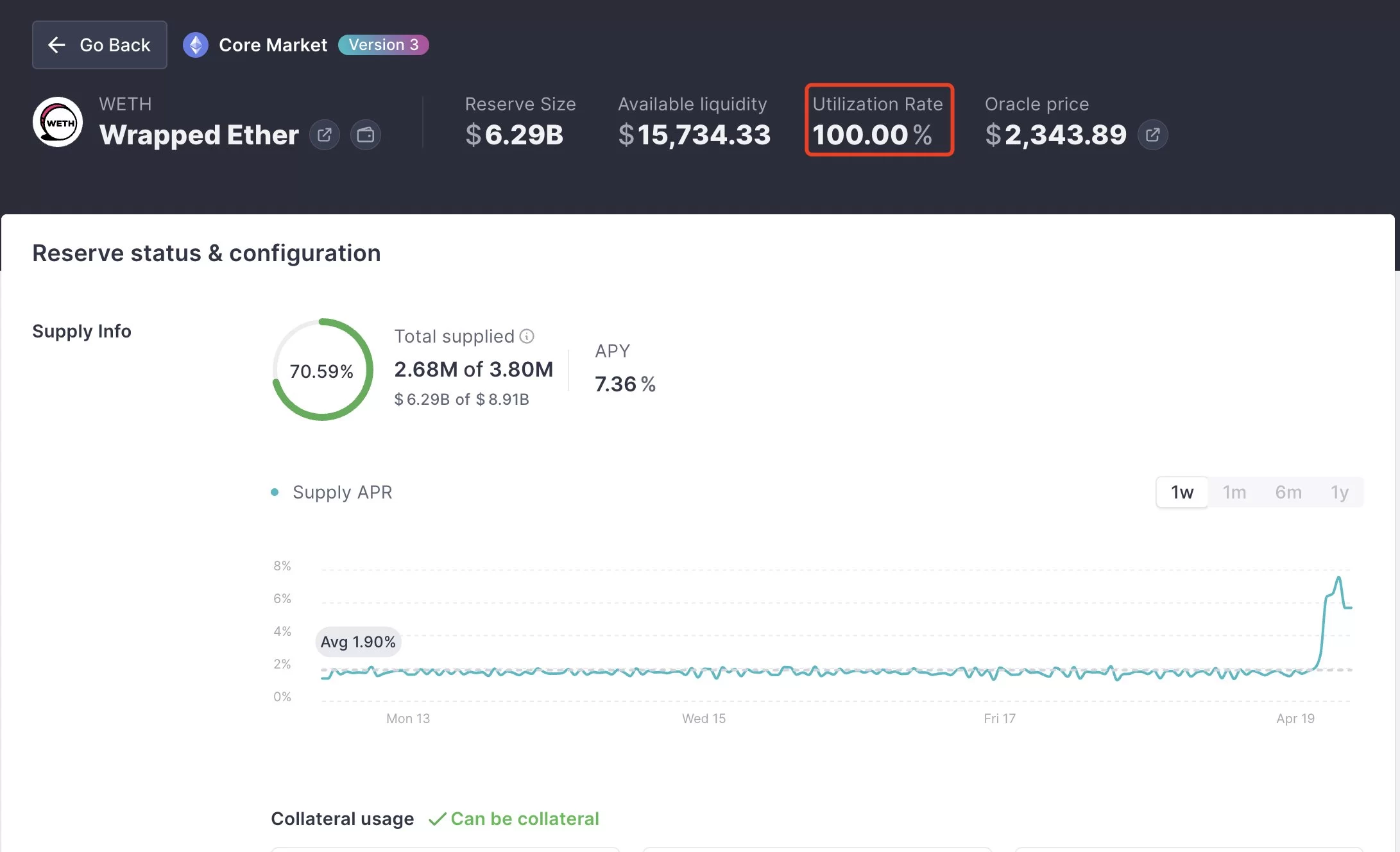 Kelp DAO Following the attack, more than $5.4 billion ETH was outflowed from Aave. Justin Sun single-handedly withdrew 65,584 ETH and the massive capital outflow crashed the system, pushing WETH utilization rates on Aave to 100%. While most funds are shifting to the rival protocol Spark, many investors are also opting for cold wallets.